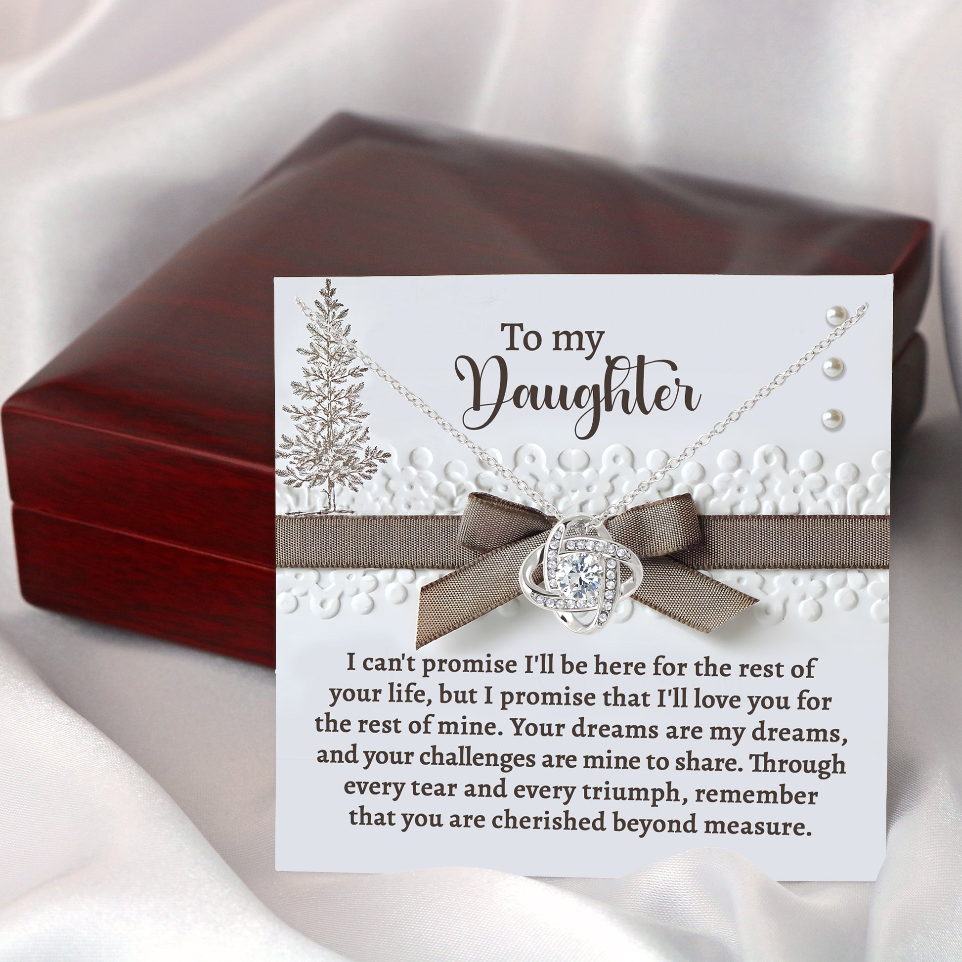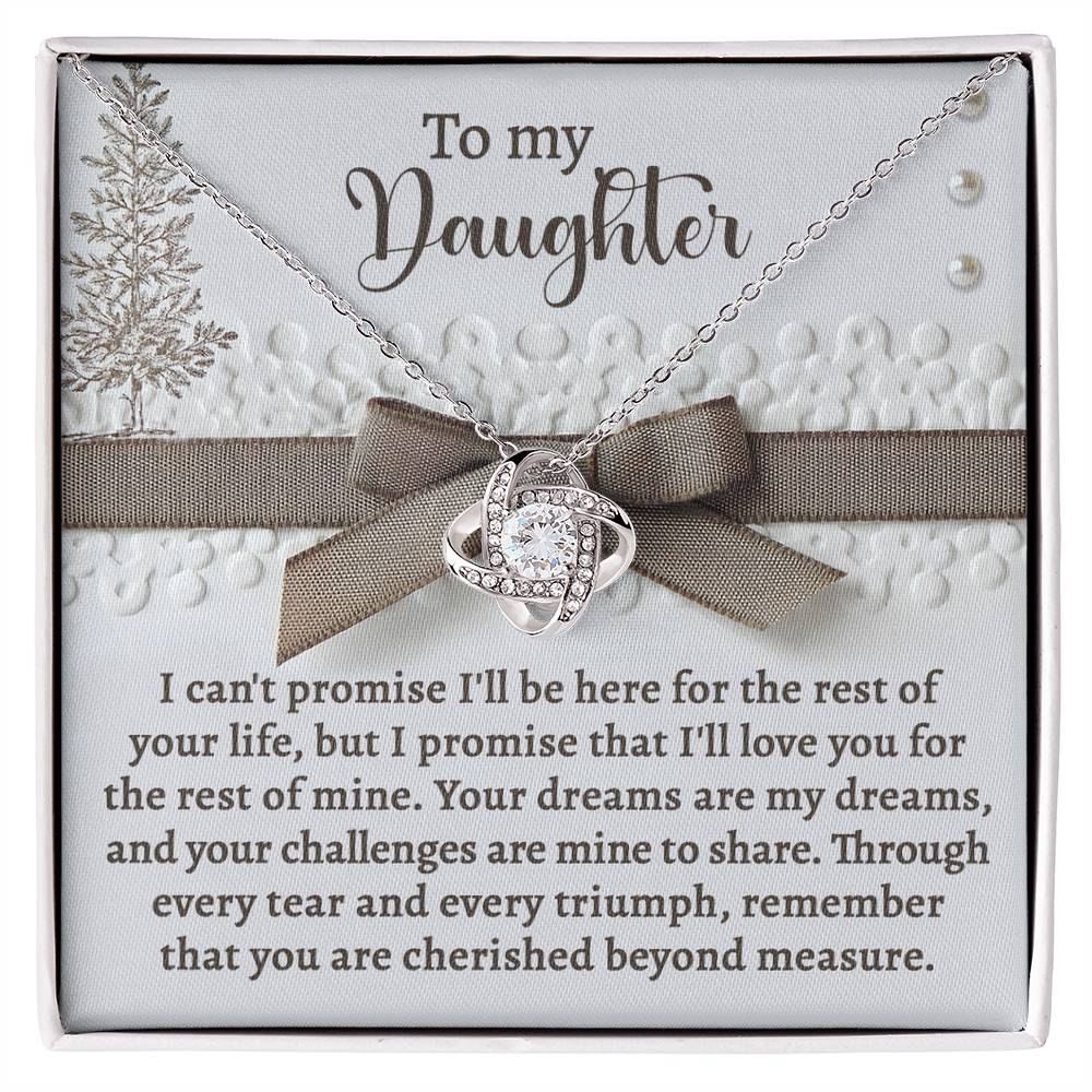 Your Daughter will be overwhelmed with joy, her eyes welling up with tears when she receives this Love Knot Necklace and your heartfelt message letting her know how much she means and how much you love her.