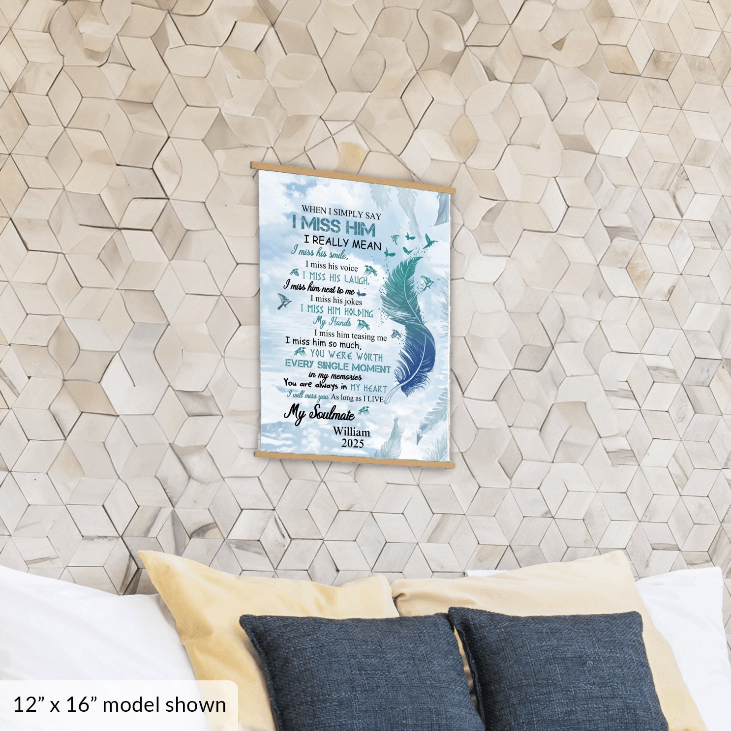 Always keep him in your heart with this Personalized Name hanging canvas print. Lightweight and versatile, this print is easy to hang and position in any room.