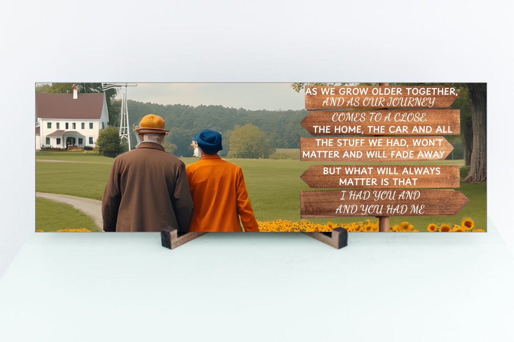 "AS WE GROW OLDER TOGETHER, AND AS OUR JOURNEY COMES TO A CLOSE, THE HOME, THE CAR AND ALL THE STUFF WE HAD WON'T MATTER AND WILL FADE AWAY. BUT WHAT WILL ALWAYS MATTER IS THAT I HAD YOU AND YOU HAD ME".