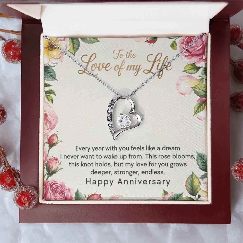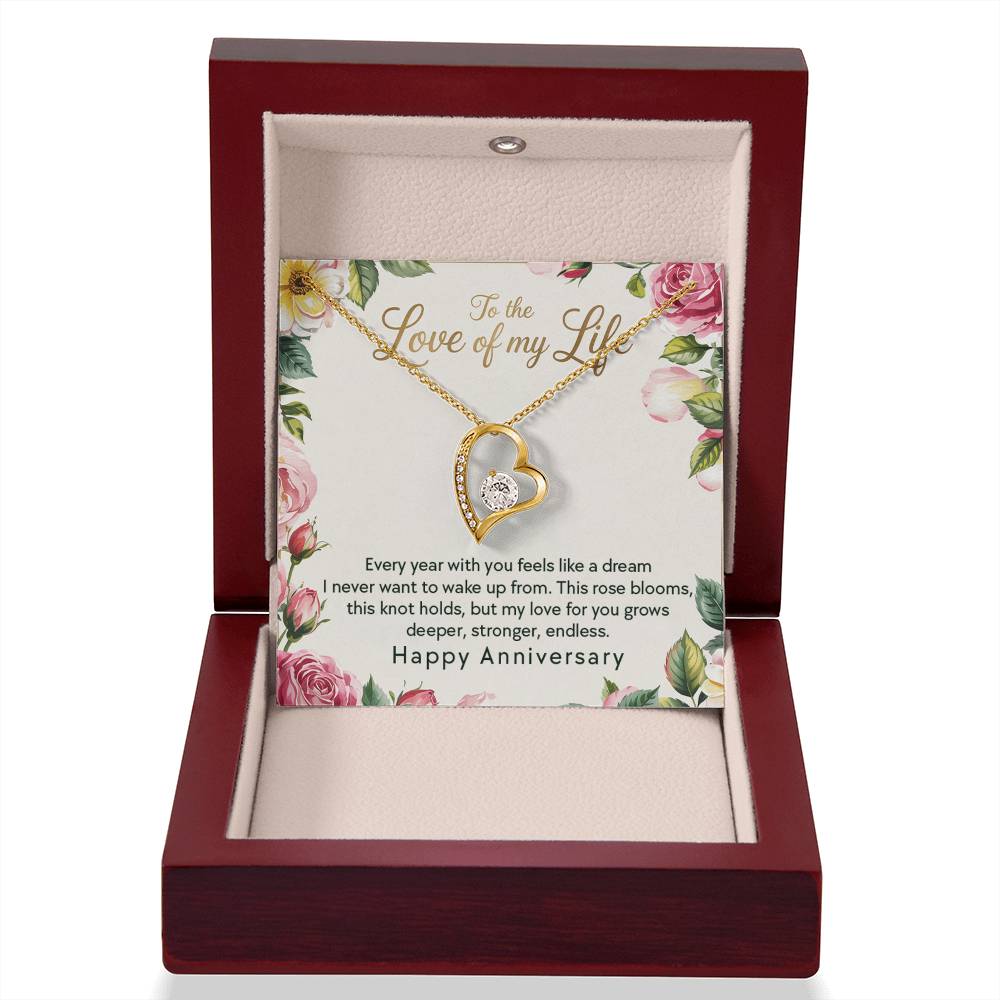 Every year with you feels like a dream I never want to wake up from. This rose blooms, this knot holds, but my love for you grows deeper, stronger, endless. Happy Anniversary"