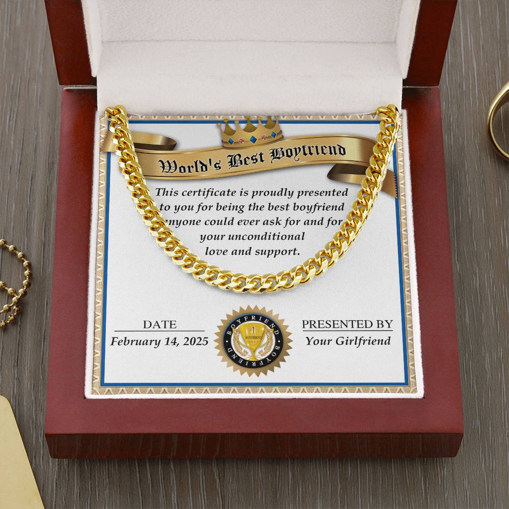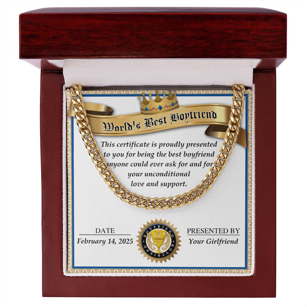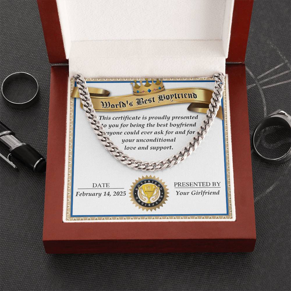 Surprise your Man with this handsome Cuban Chain Link necklace gift and your loving message.