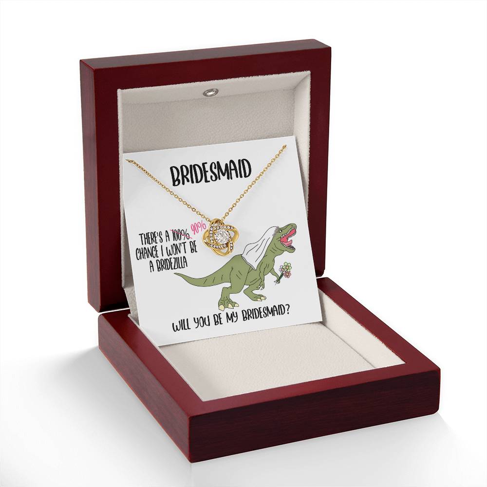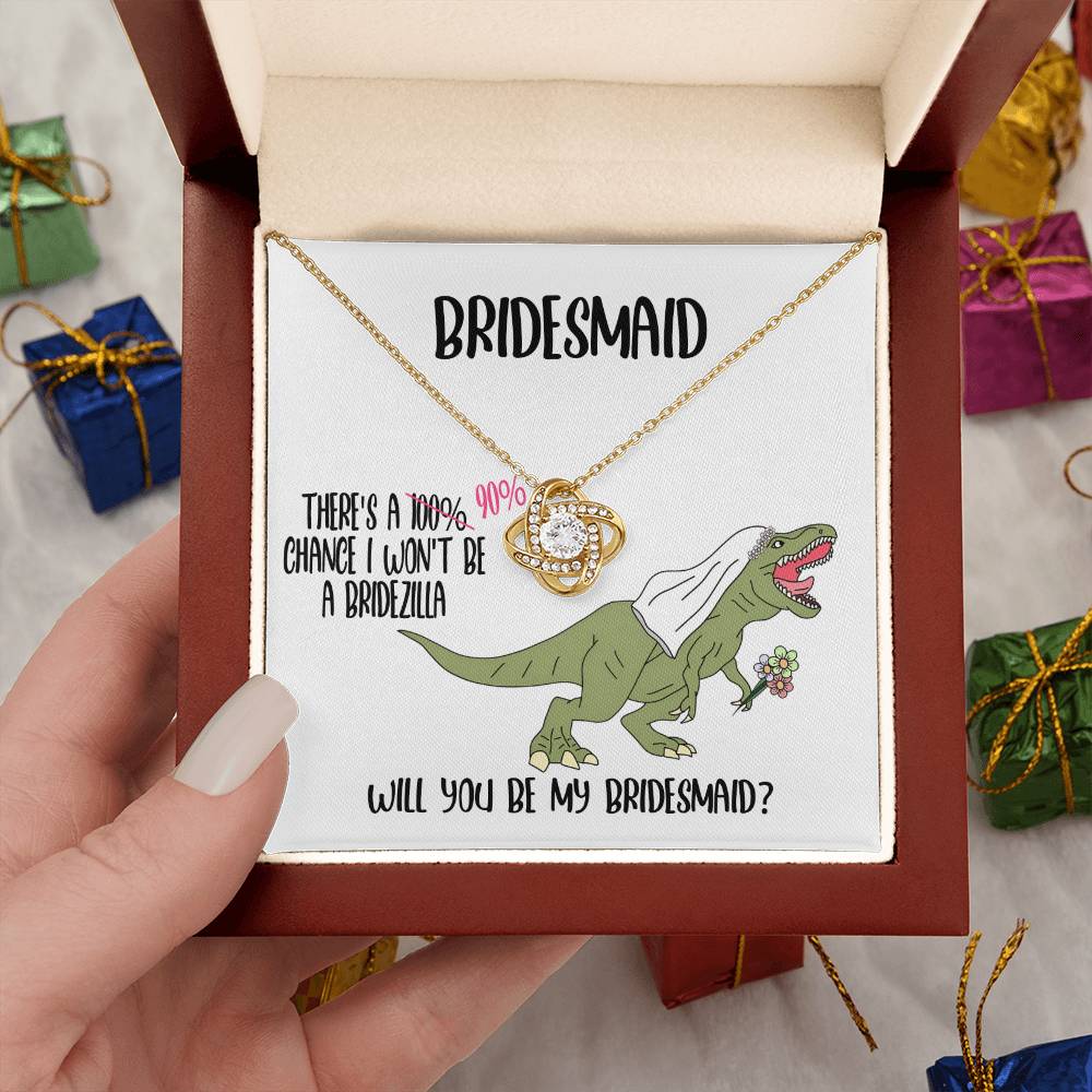 Surprise your Bridesmaid with this sparkling Love Knot necklace asking her to be your bridesmaid.