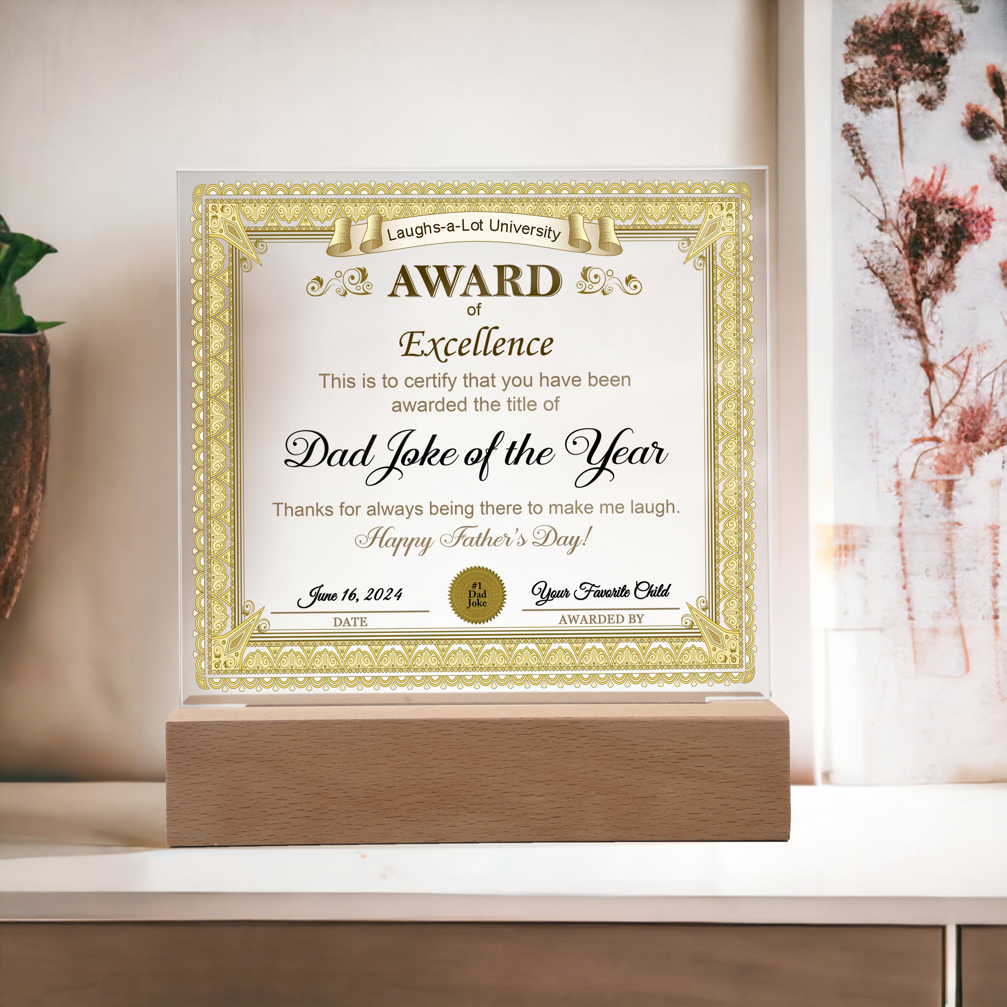 Your plaque will be made from high-quality acrylic and will feature a professionally printed design. This present makes for a truly unique and sentimental gift that will be treasured for years to come!