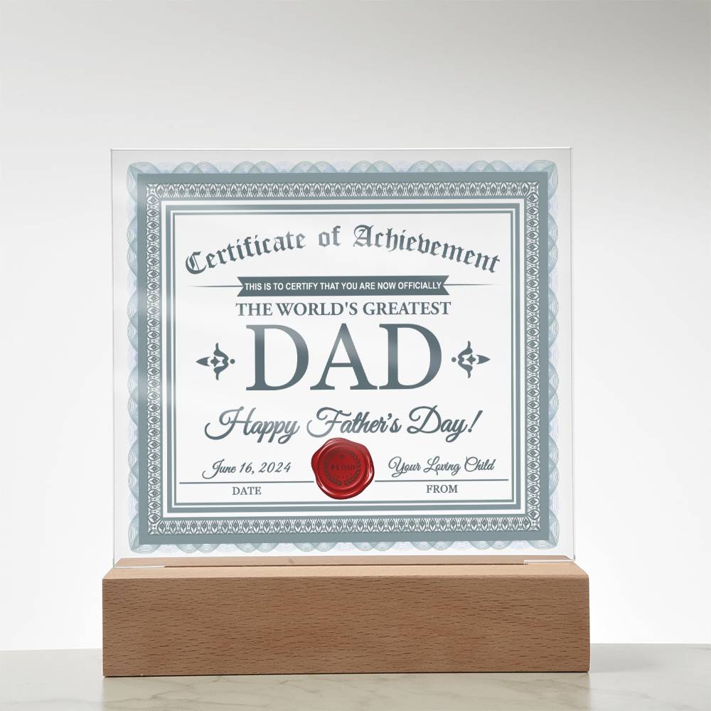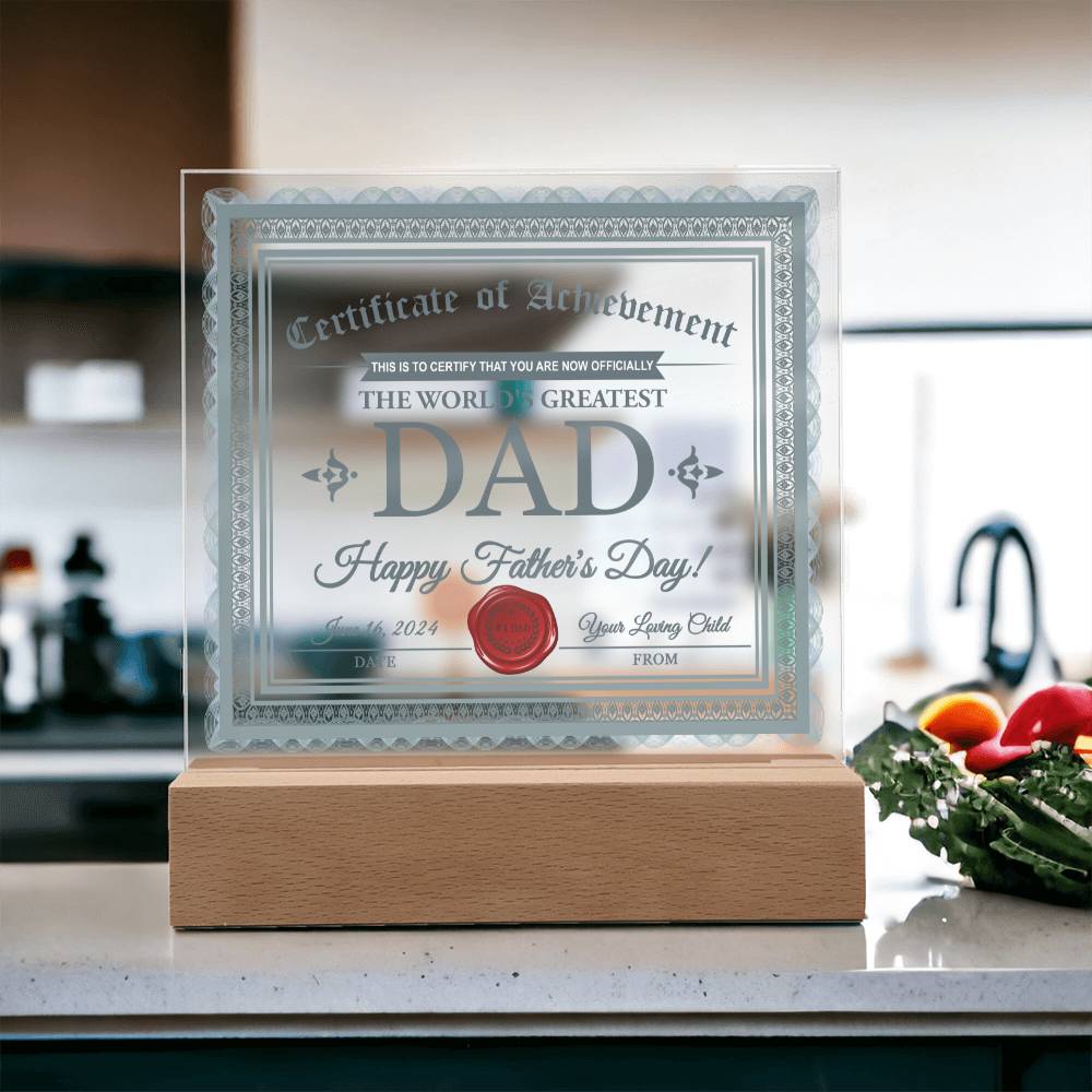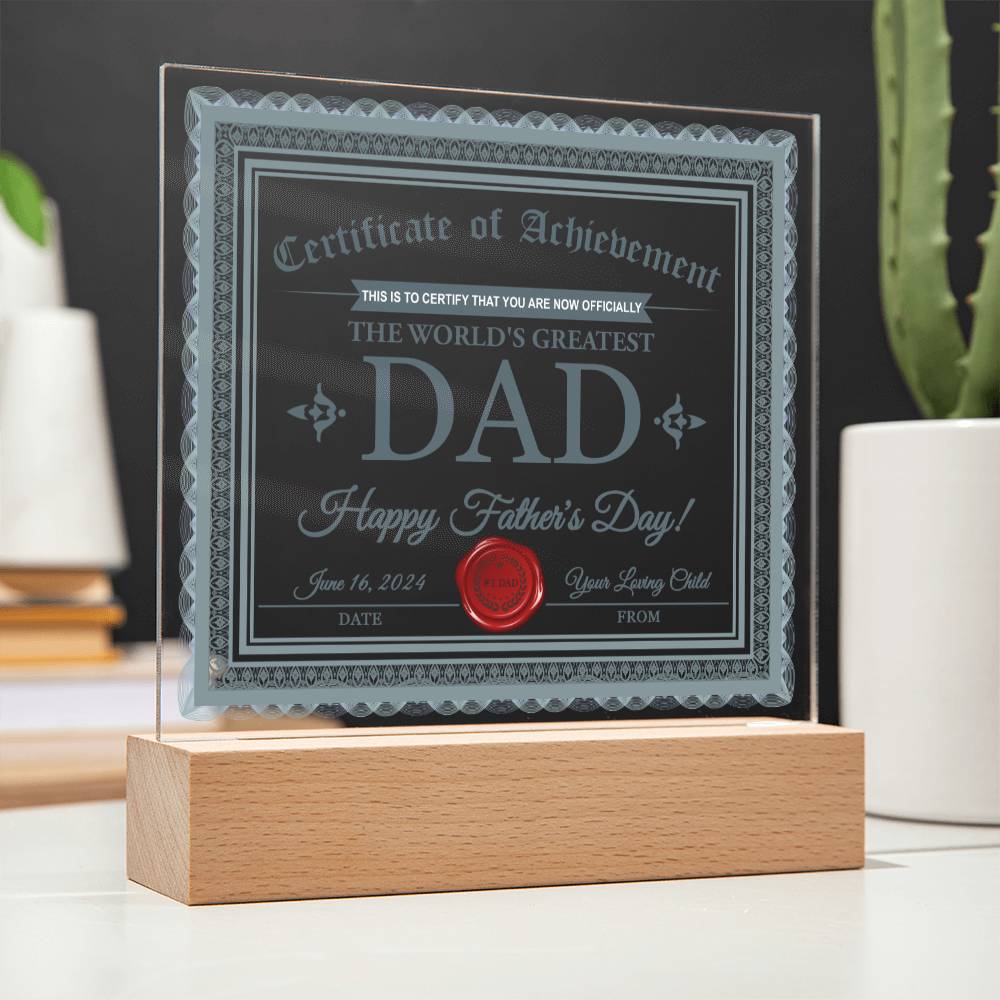 Dad Gift-Certificate Of Achievement-Square Acrylic Plaque