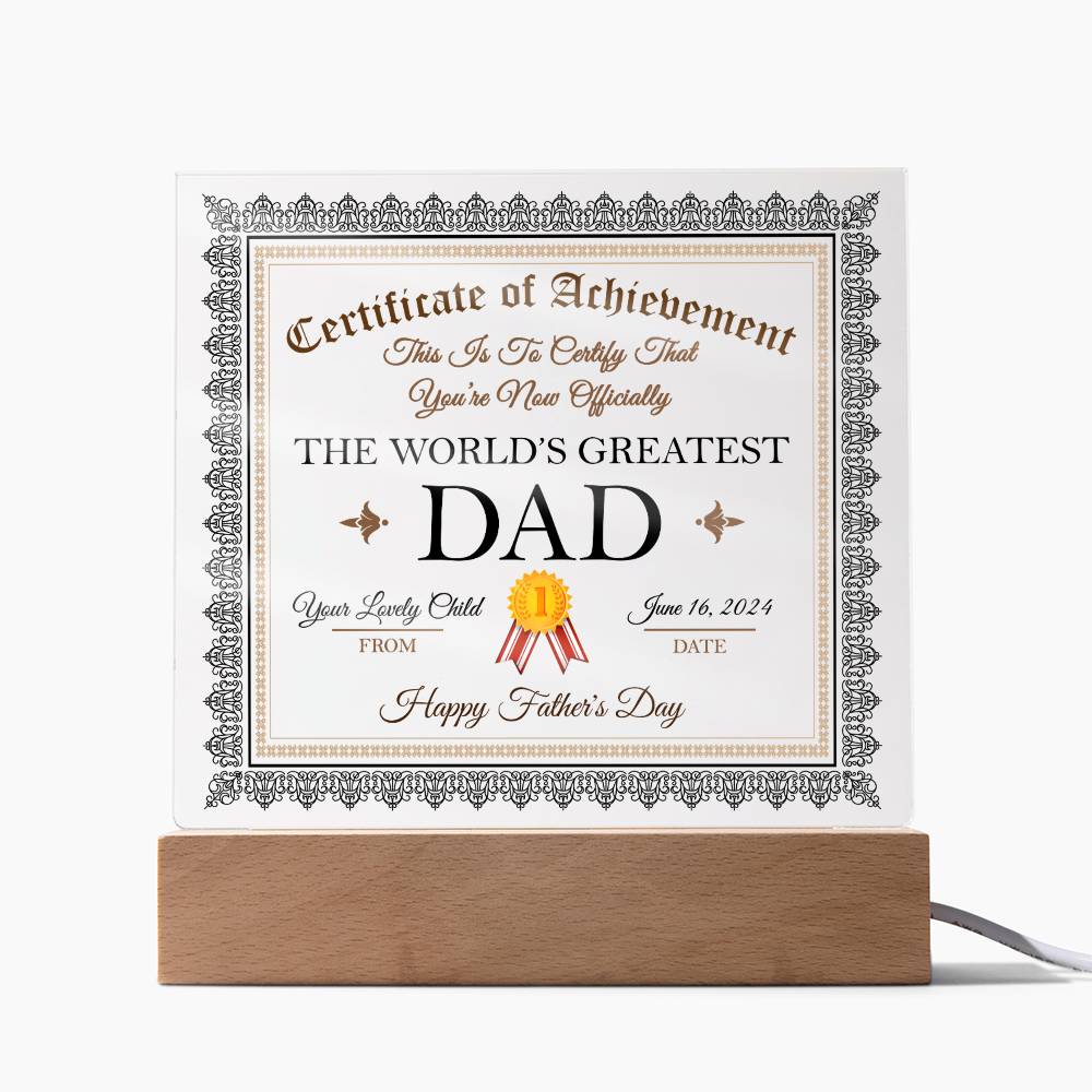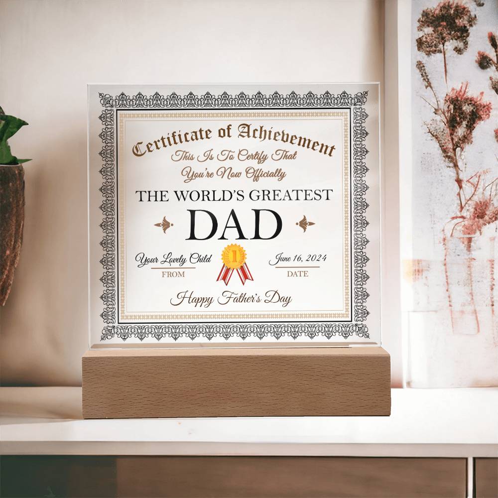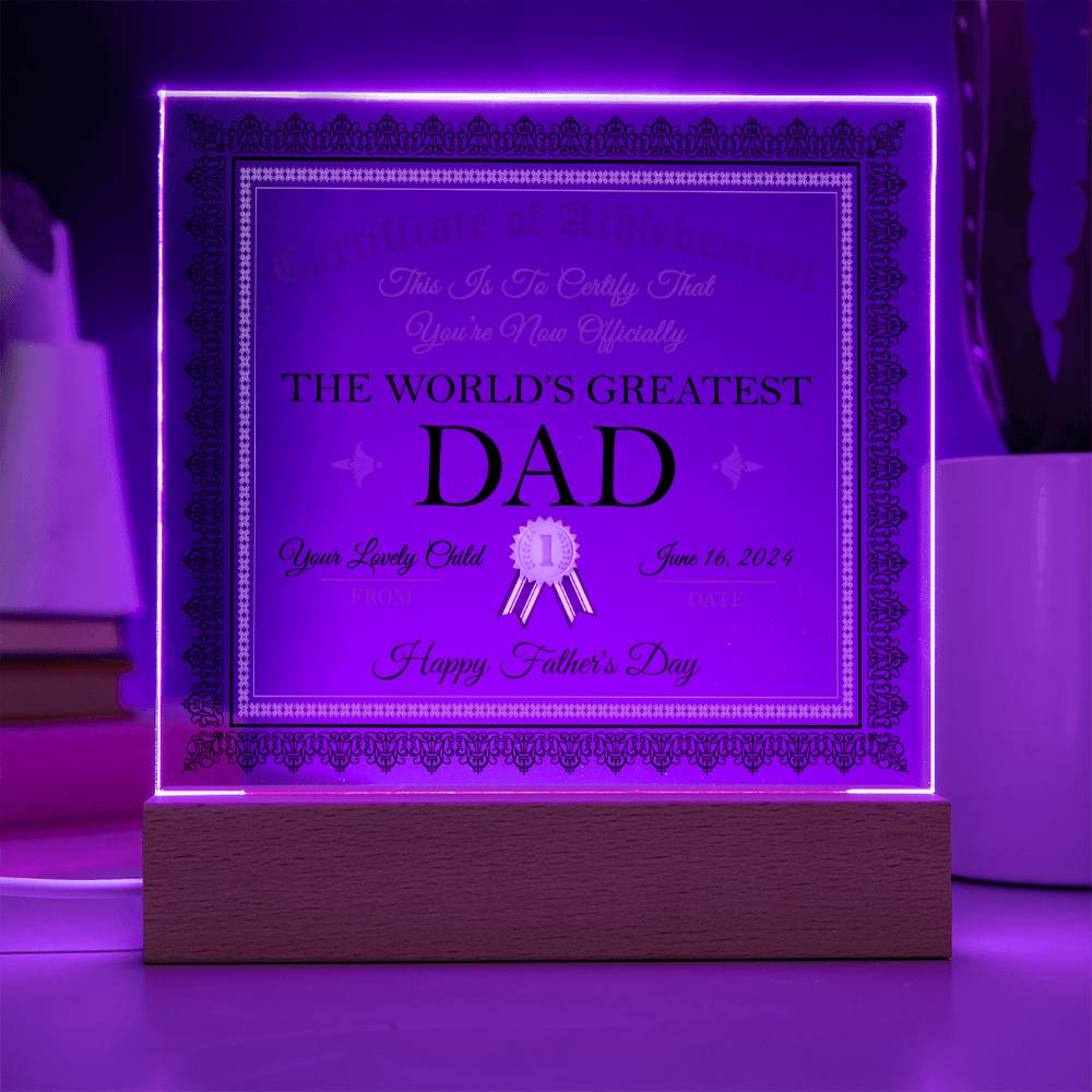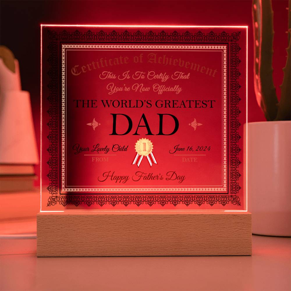 Dad Gift-Worlds Greatest Dad Certificate-Square Acrylic Plaque