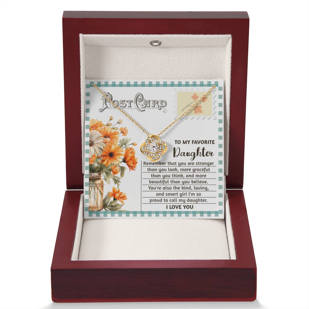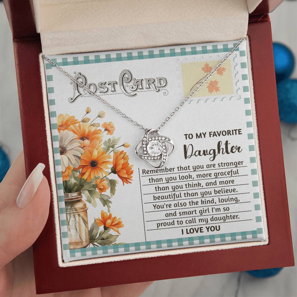 Your daughter will be overwhelmed with joy, her eyes welling up with tears when she receives this Love Knot Necklace and your heartfelt message letting her know how much she means and how much you love her.