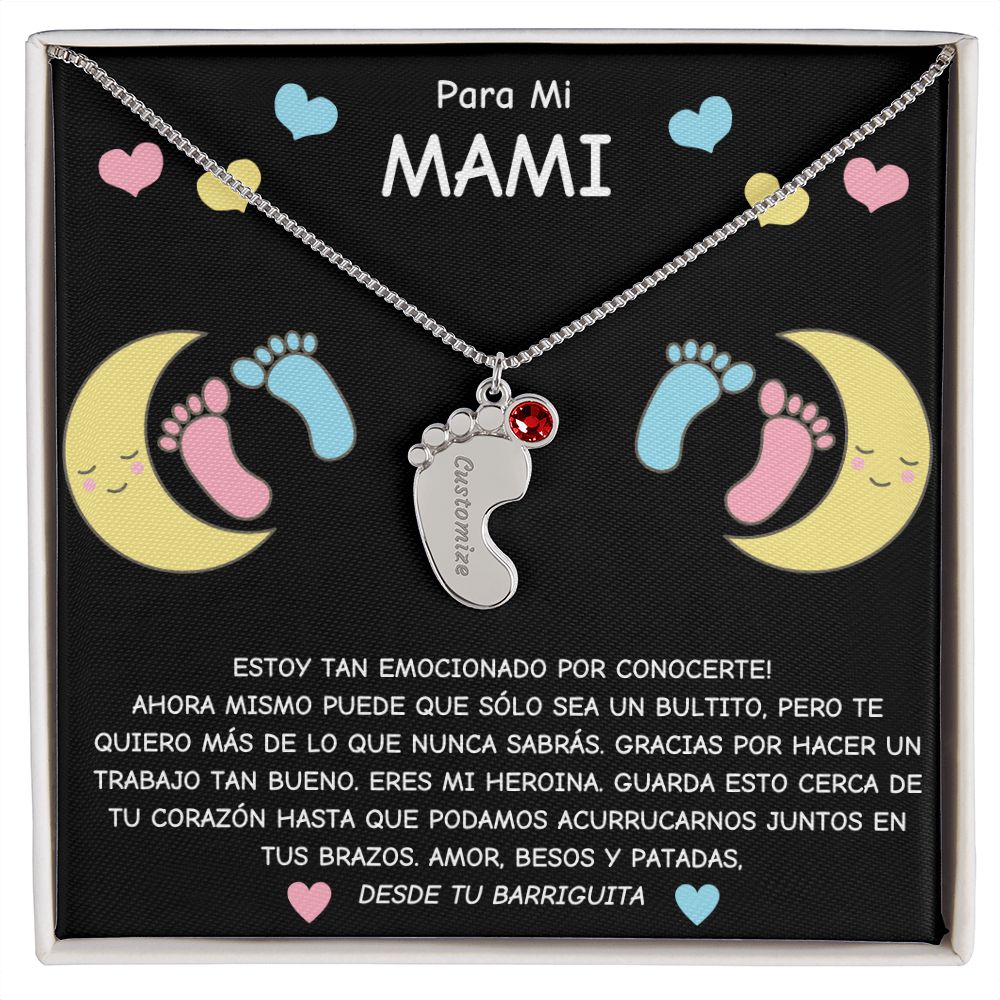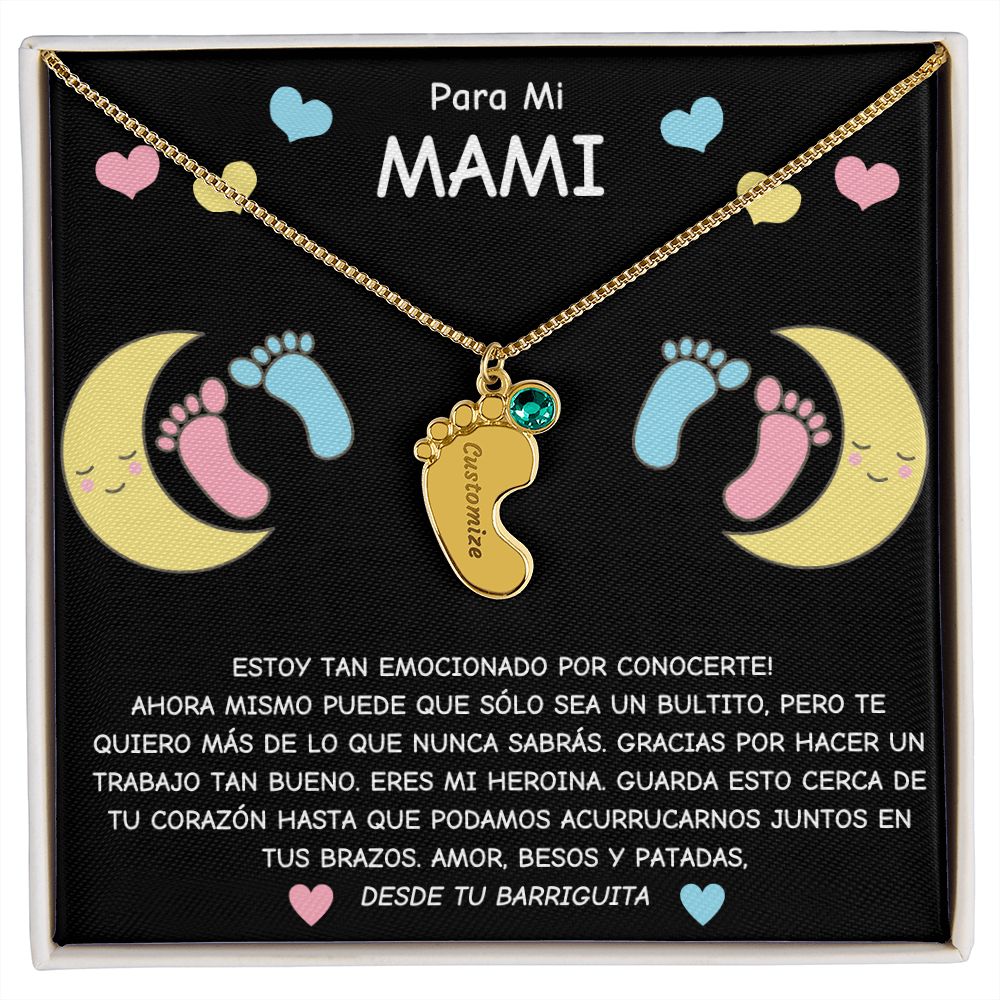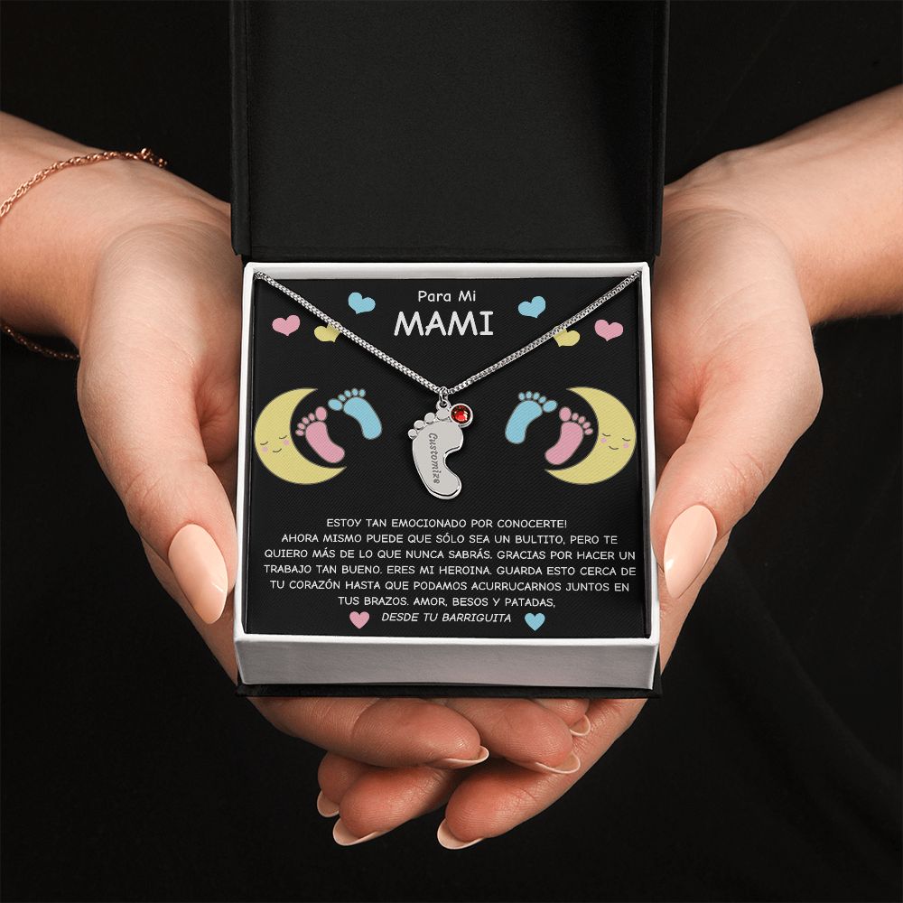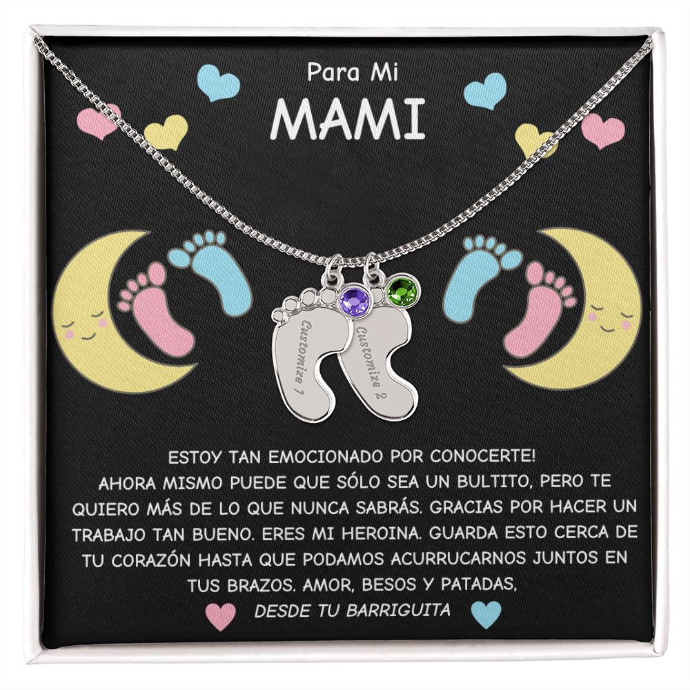 Expecting Mom To Be- Spanish- Personalized Baby Feet with Birthstone Necklace Gift