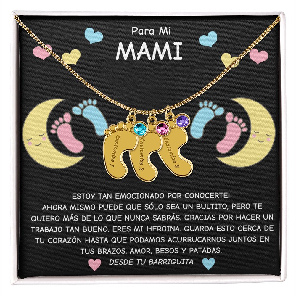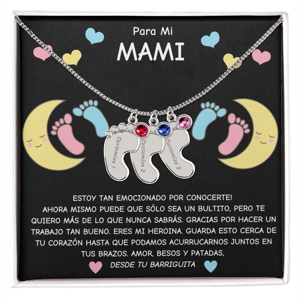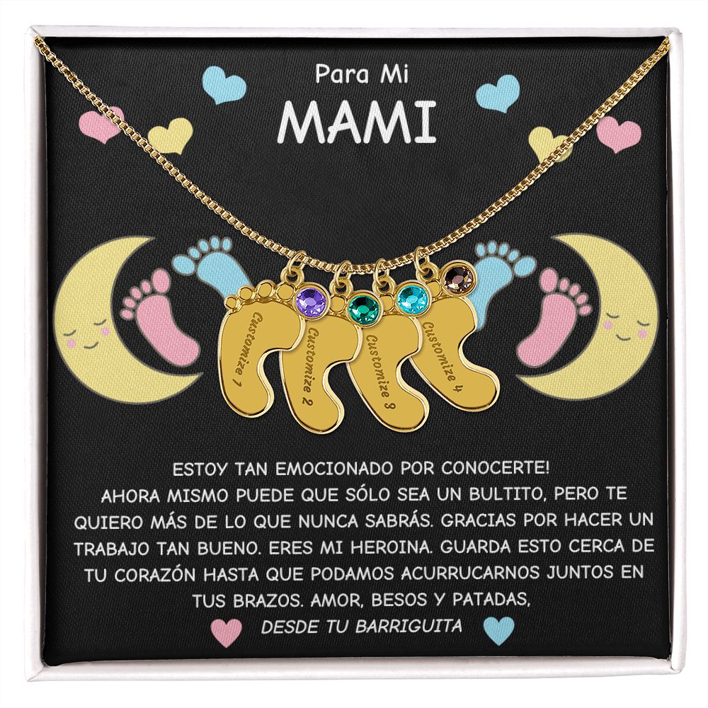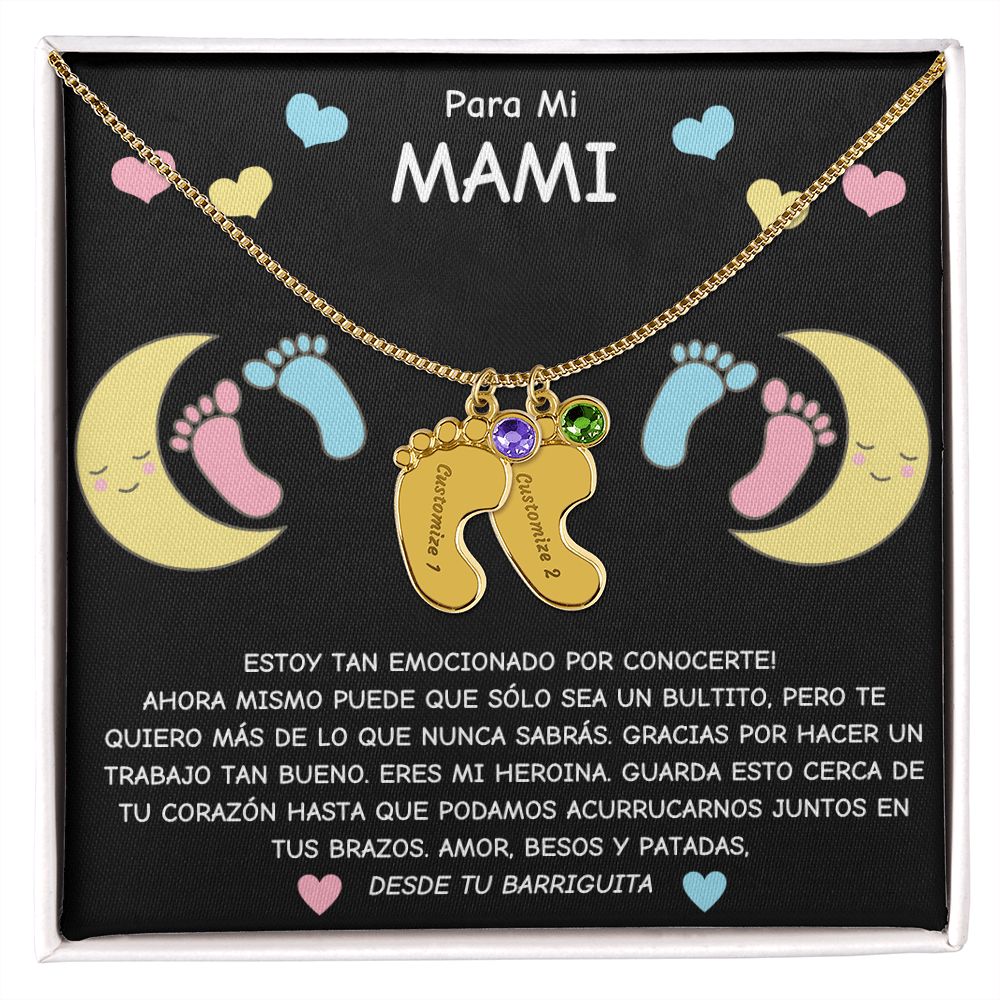 Expecting Mom To Be- Spanish- Personalized Baby Feet with Birthstone Necklace Gift