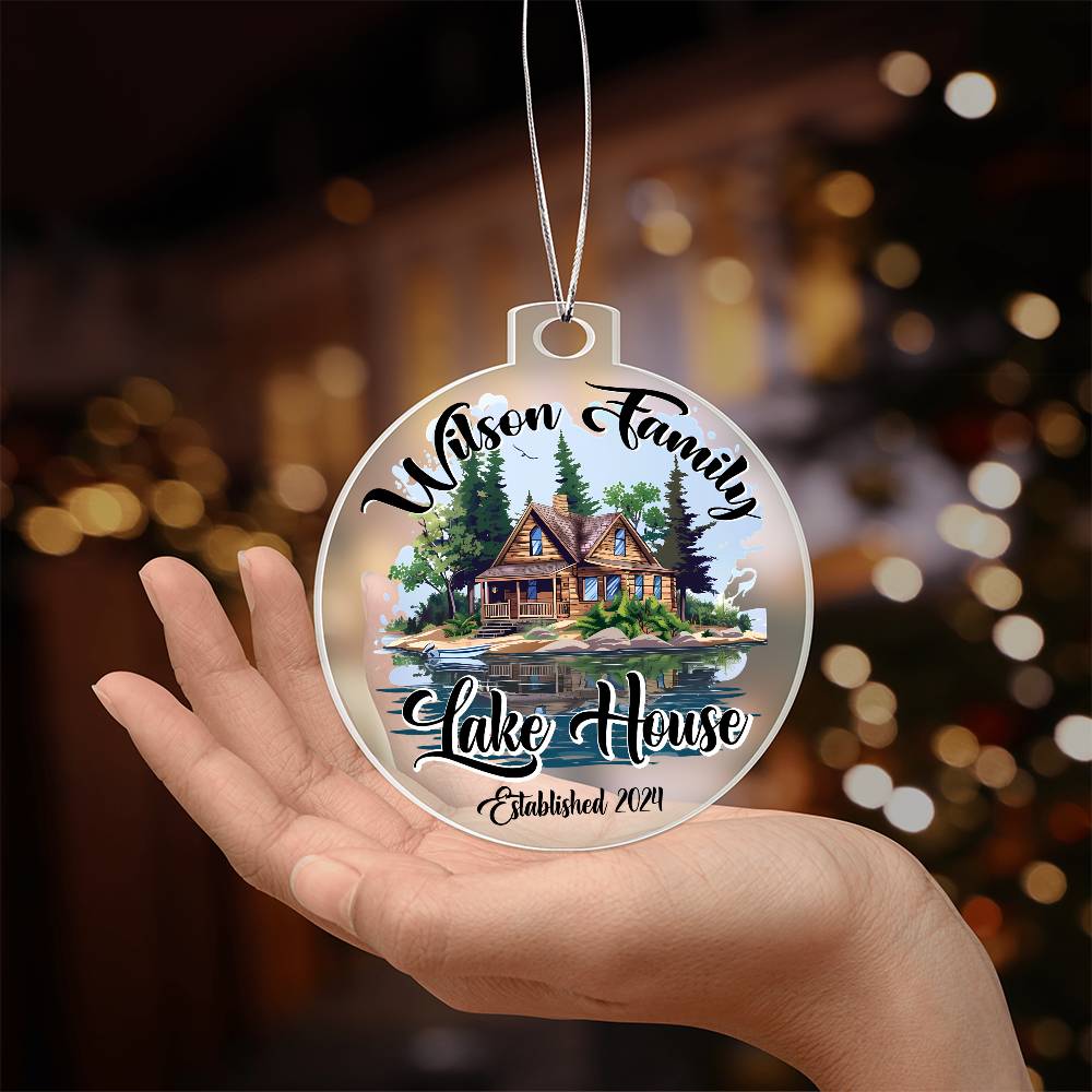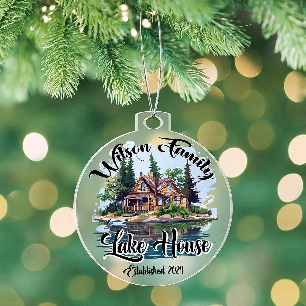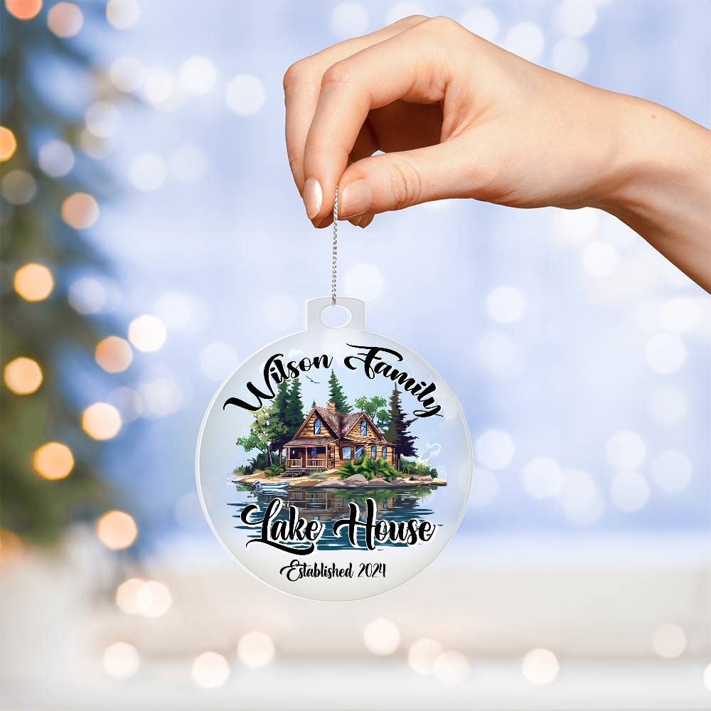 This Personalized Lake House Acrylic Christmas Tree Ornament is perfect for your family or friends.