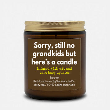Funny Candle Gift For Parents - Still No Grandkids - 9oz Evergreen Scent Candle