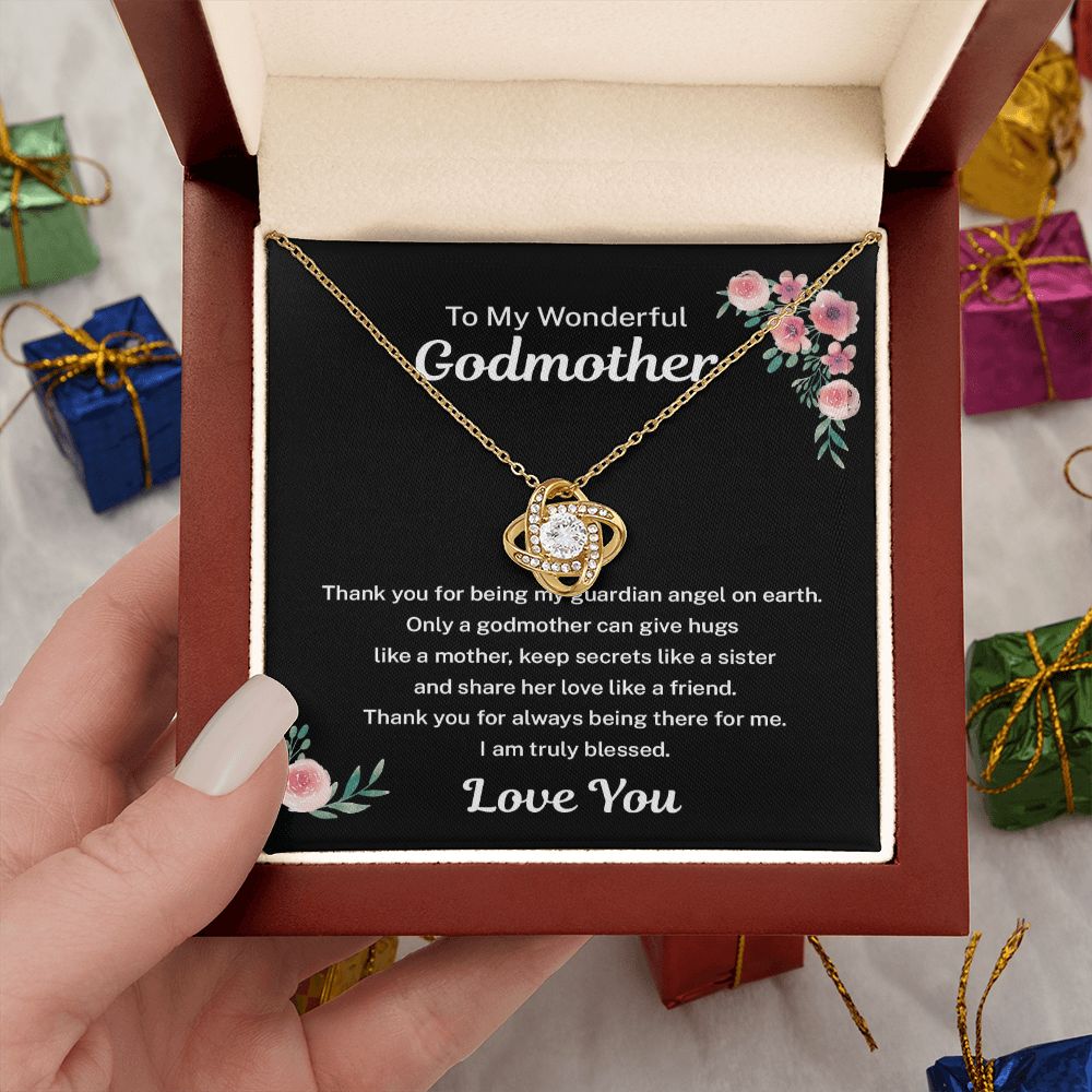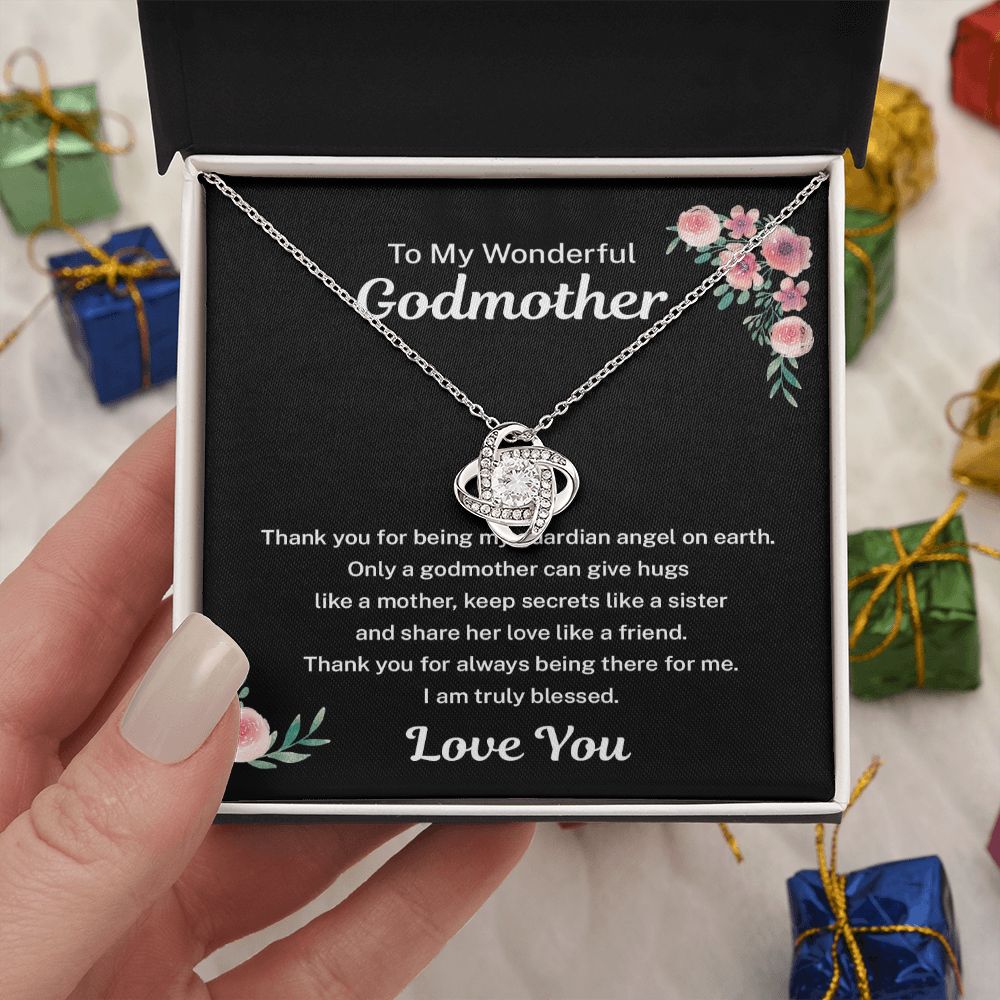 Surprise your Godmother on Mother's Day, her birthday, at Christmas or any time of the year just to let her know how much you love her, with this elegant Love Knot Necklace that is sure to make her heart melt! Your enclosed heartfelt message card says it all!