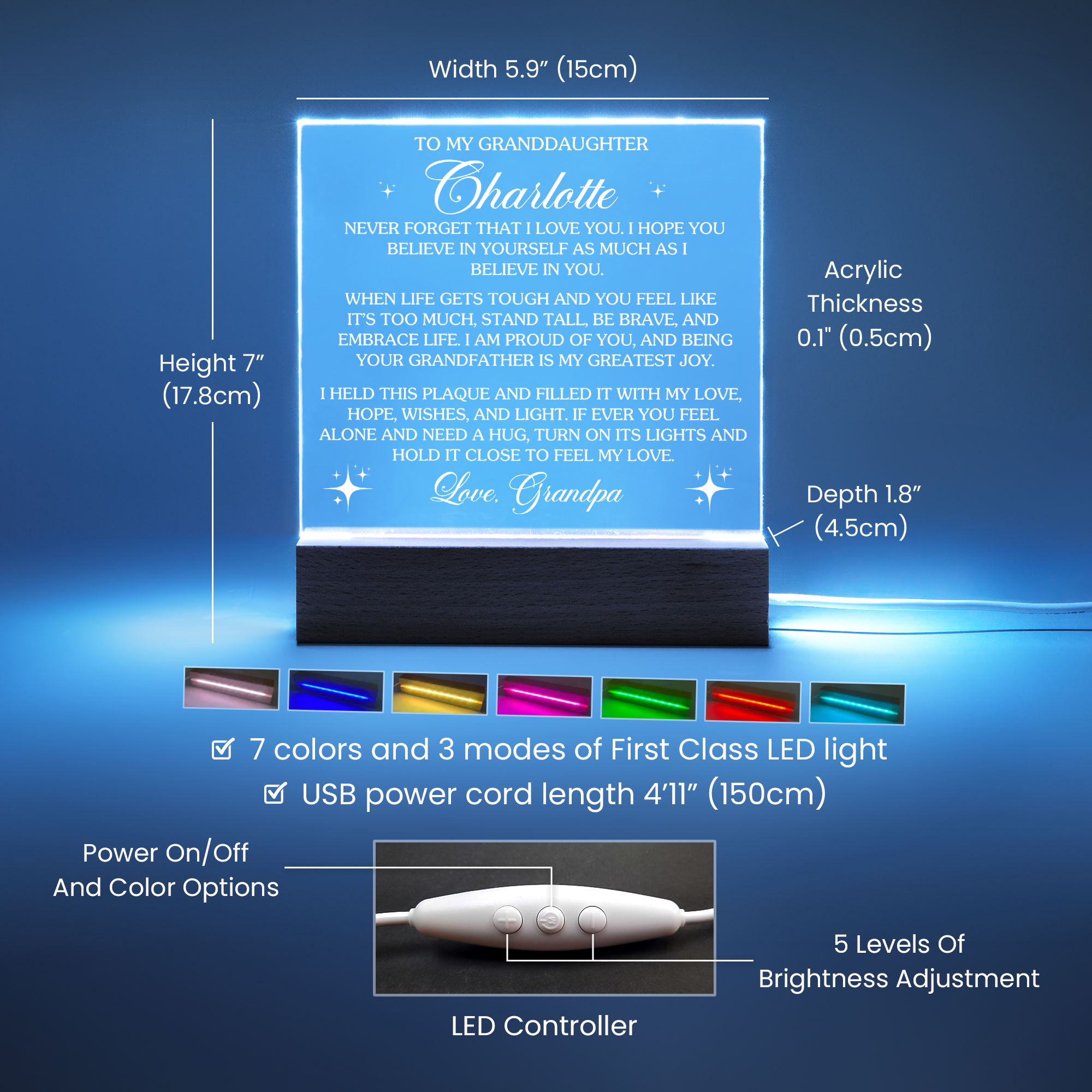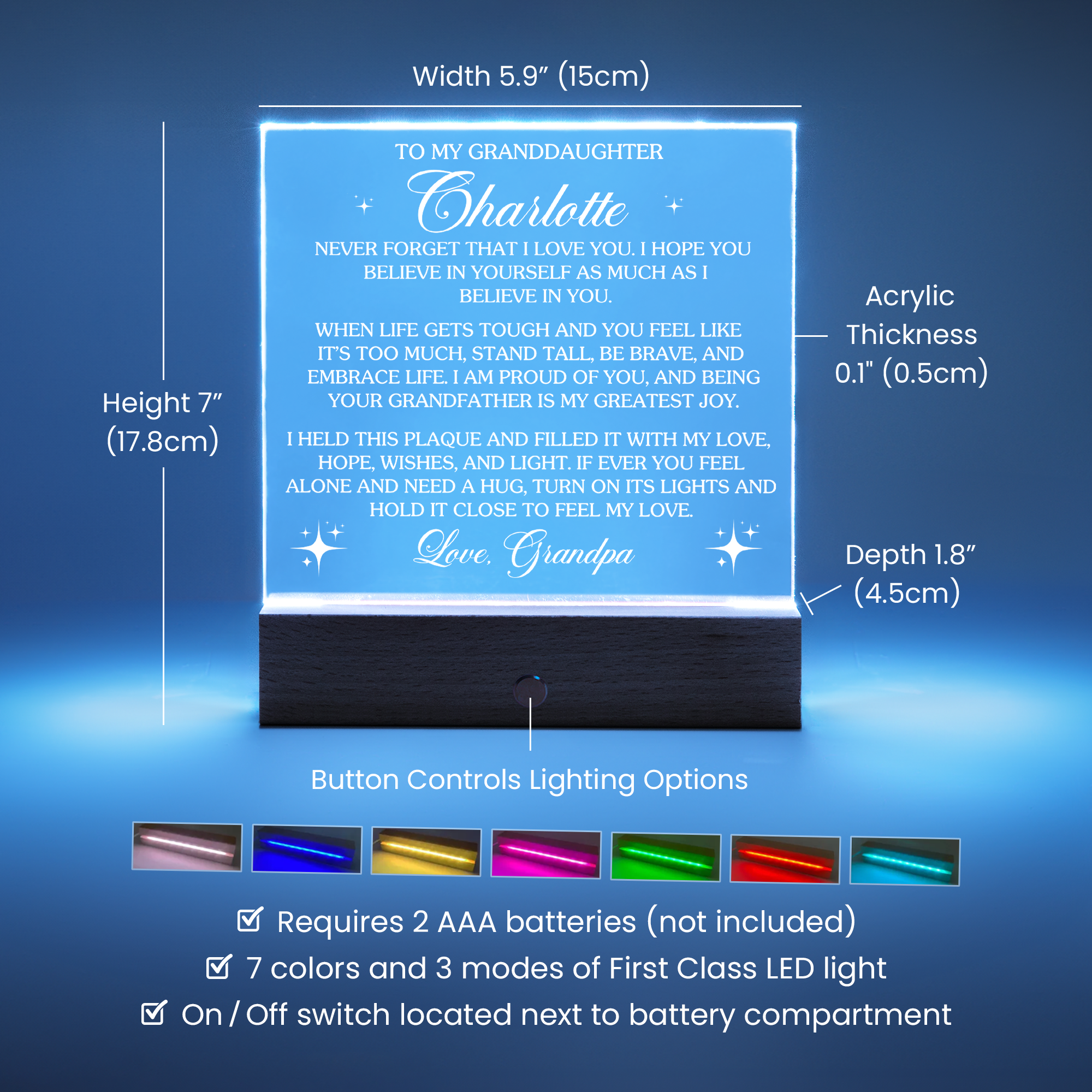 To My Granddaughter - Personalize with Names - Believe in Yourself as Much as I Believe in You - Acrylic LED Plaque - From Grandpa or Grandma
