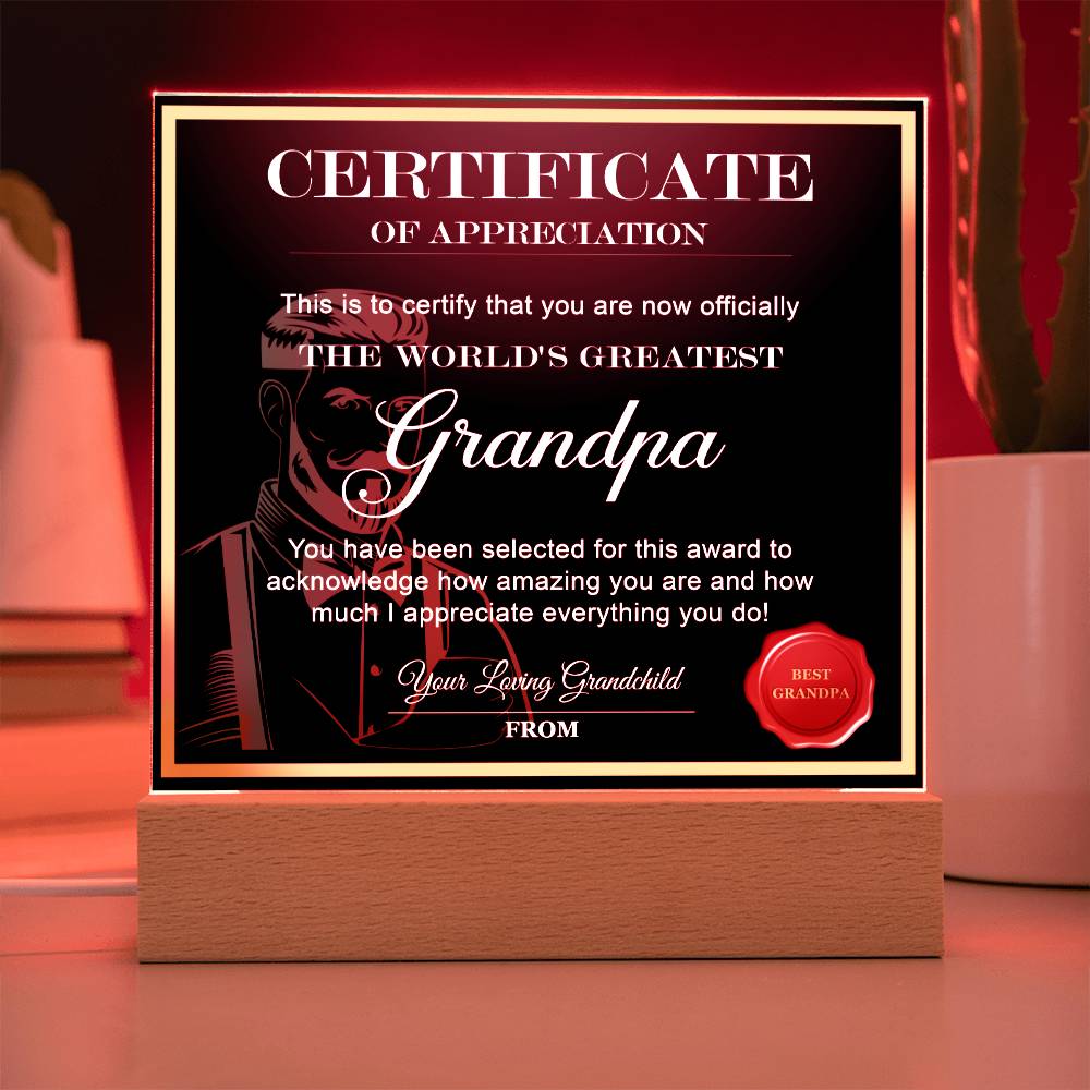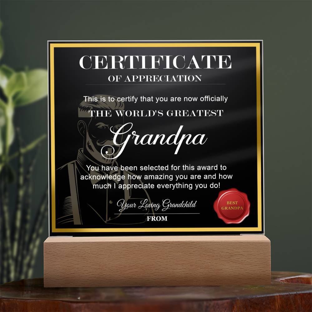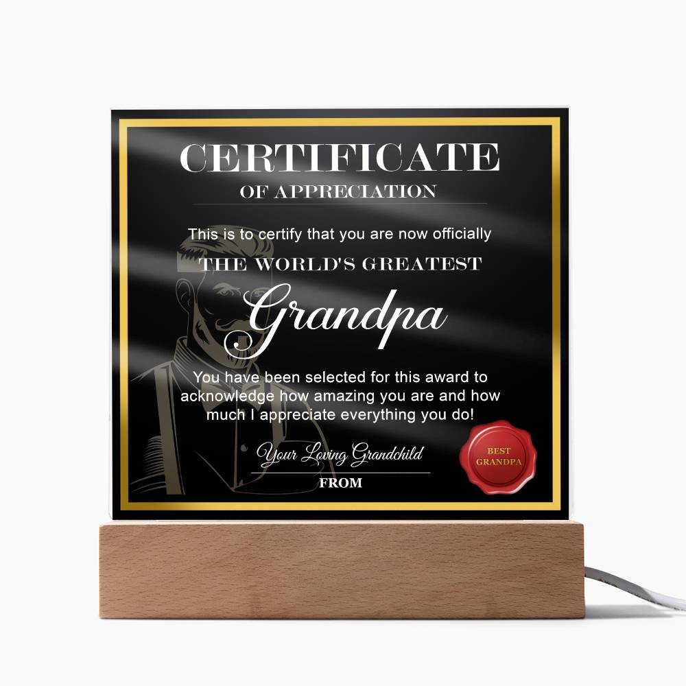 Grandpa Gift-Worlds Greatest Grandpa-Square Acrylic Plaque