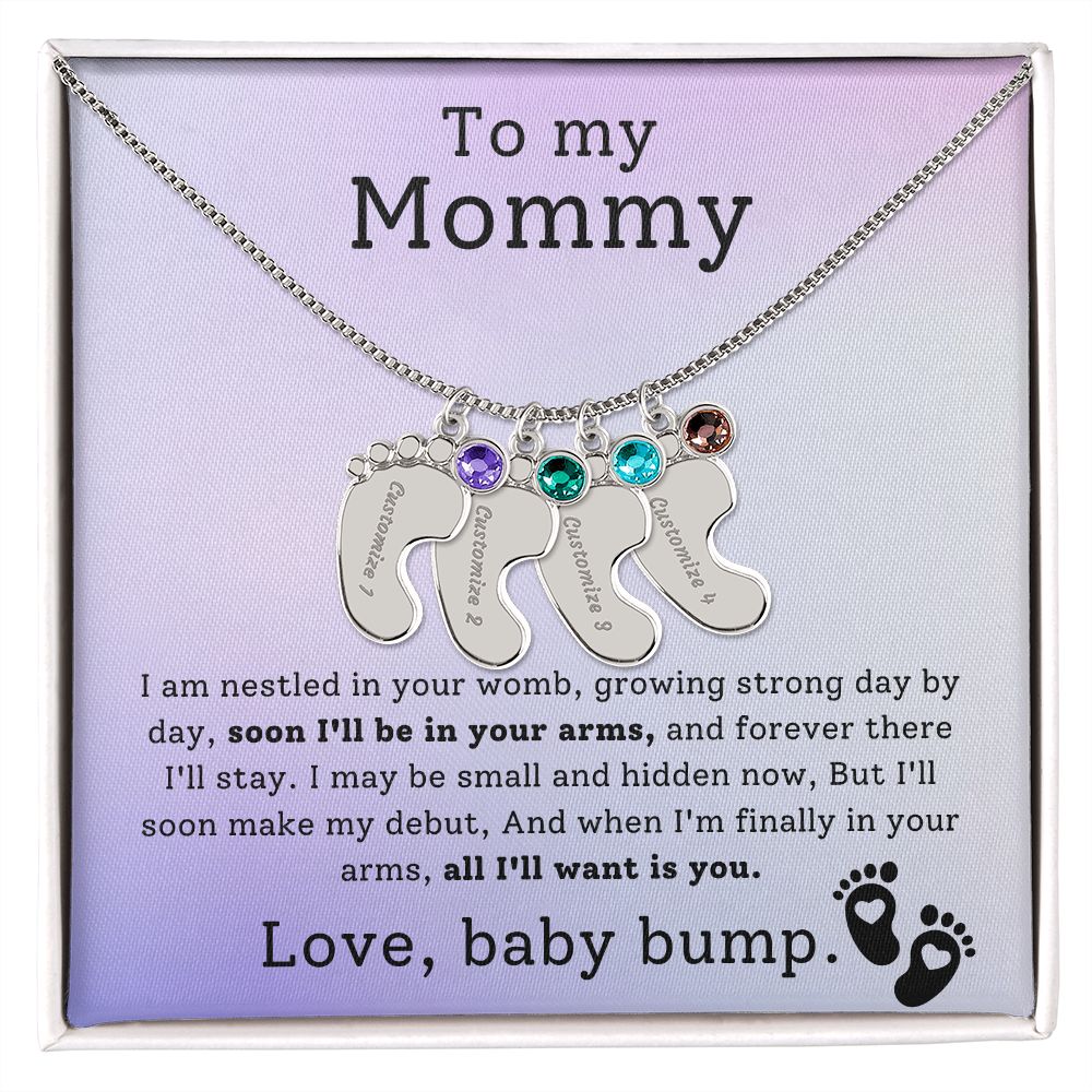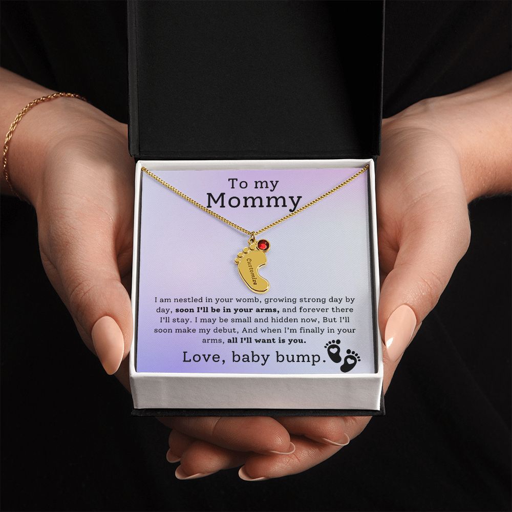 Mommy To Be - Engraved Baby Feet Necklace with Birthstone -All I Want Is You- w/o lux box