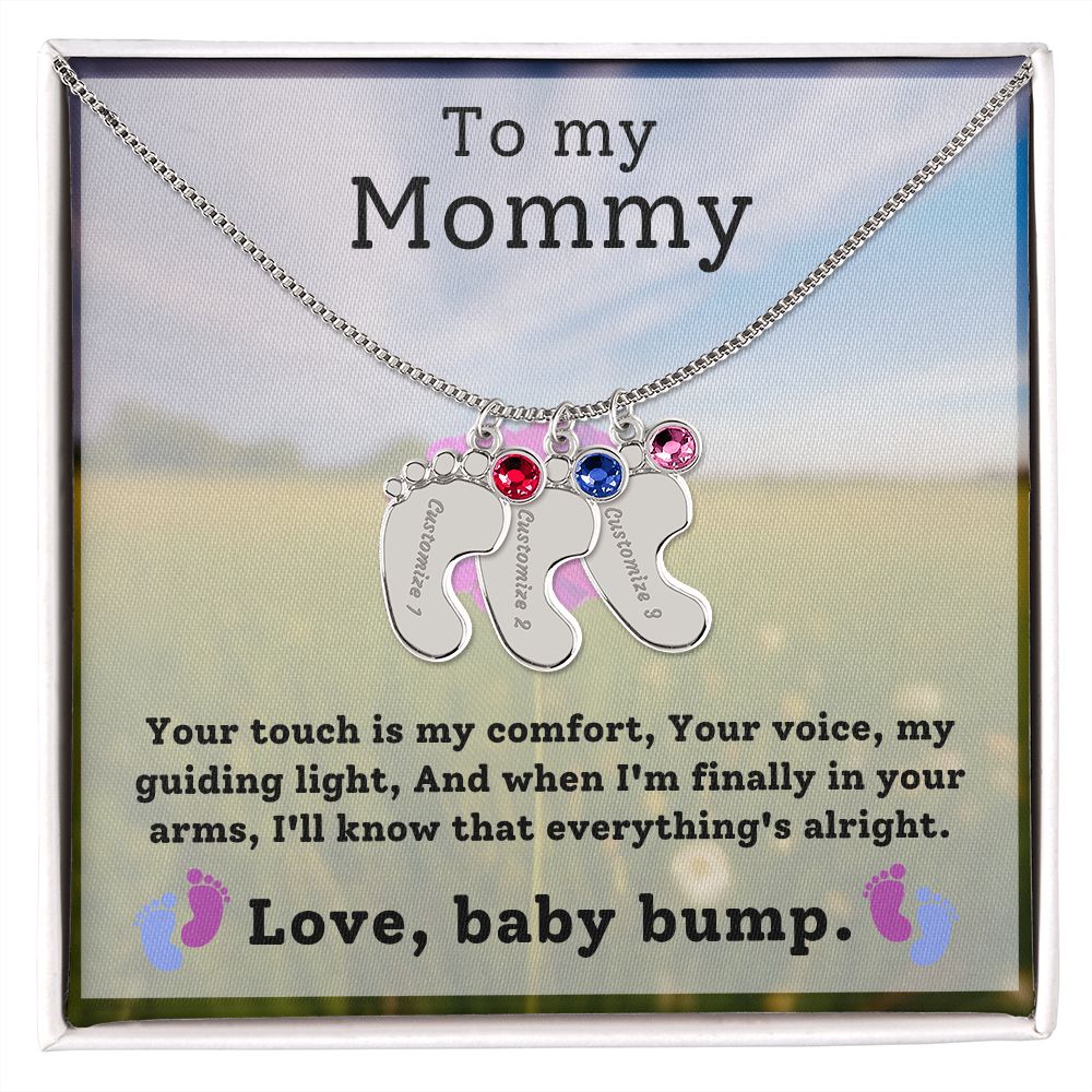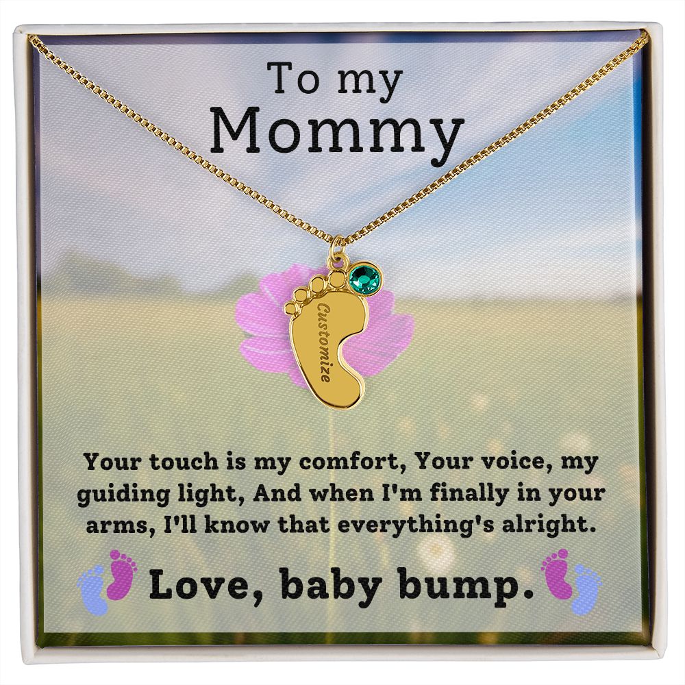 Mommy To Be - Engraved Baby Feet Necklace with Birthstone - Your Touch Is My Comfort- w/o lux box
