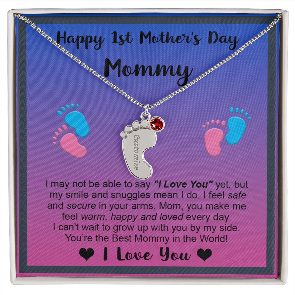Mommy's First Mothers Day Gift- Engraved Baby Feet Necklace with Birthstone - Dup 2