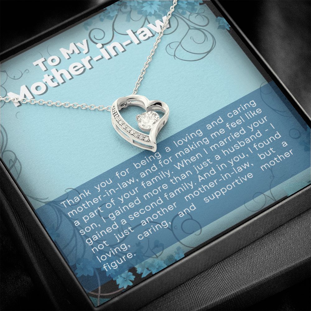 Surprise your Mother-in-Law with this dazzling Forever Love Necklace. It is sure to make her heart melt! She will tear up when she sees your gift along with the heartfelt, loving message card: