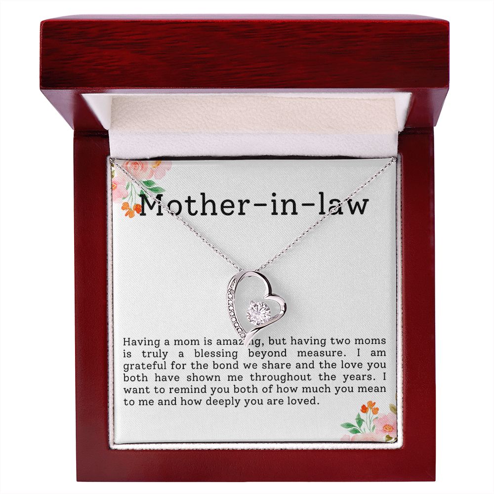 Surprise your Mother-in-Law with this dazzling Forever Love Necklace. It is sure to make her heart melt! She will tear up when she sees your gift along with the heartfelt, loving message card: