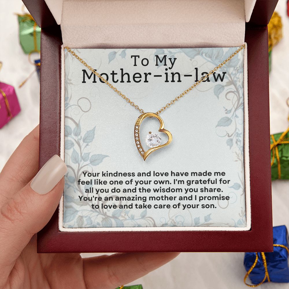 Surprise your Mother-in-Law with this dazzling Forever Love Necklace. It is sure to make her heart melt! She will tear up when she sees your gift along with the heartfelt, loving message card: