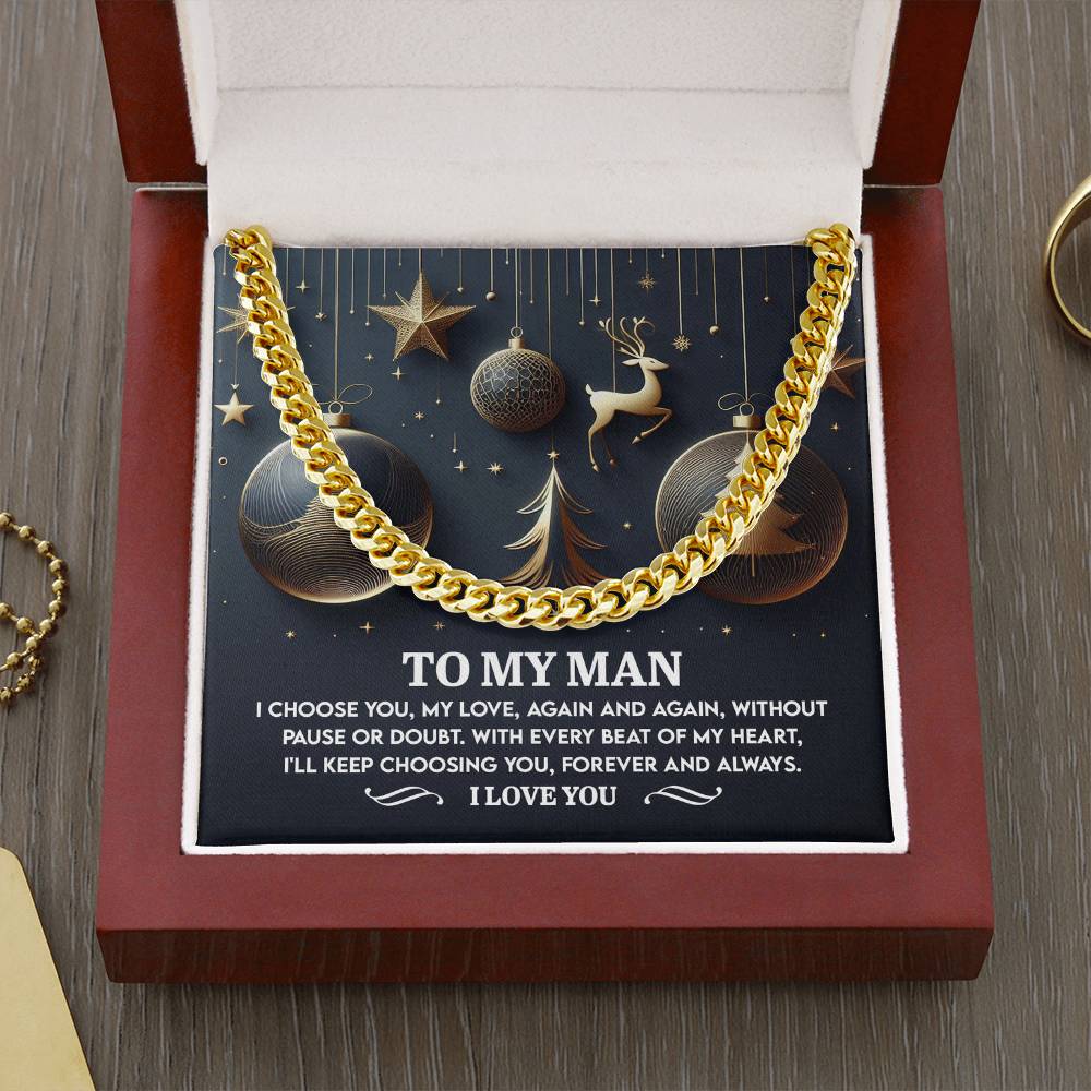 Surprise your Man with this handsome Cuban Chain Link necklace gift and your loving message.
