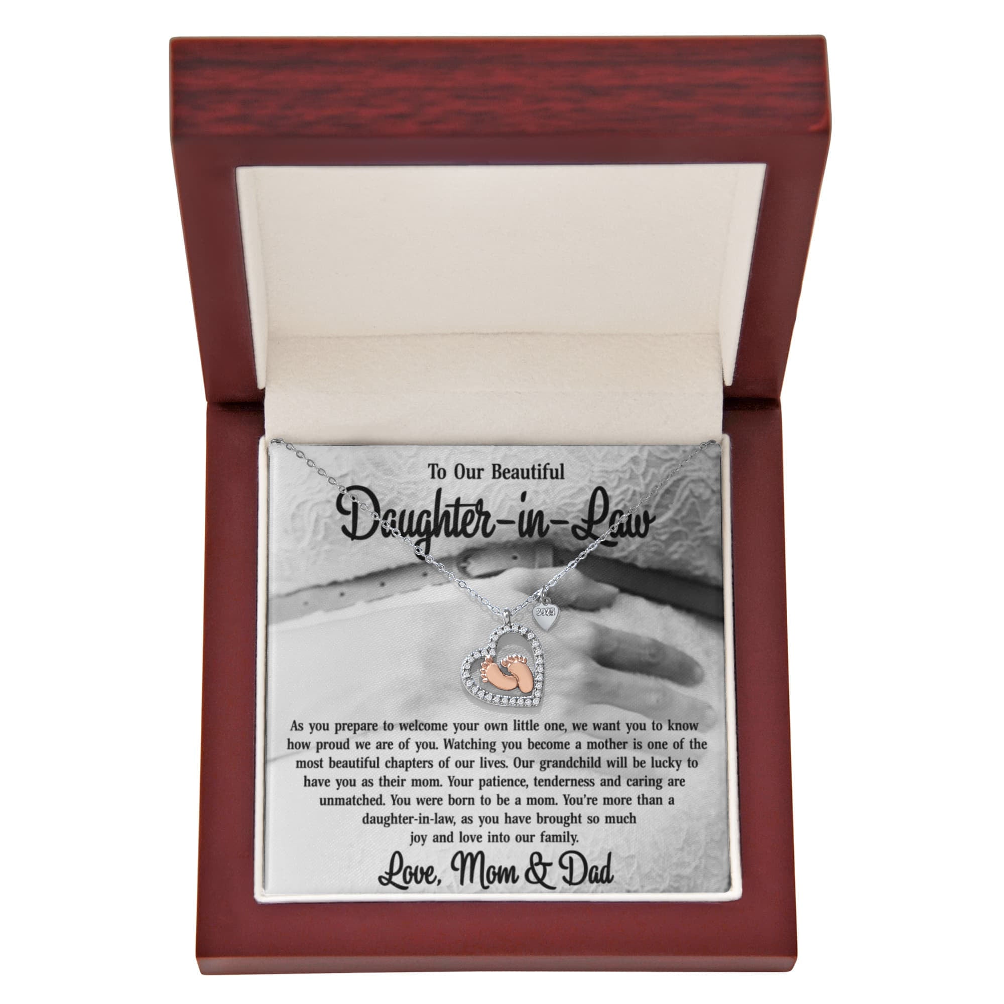 💖 To Our Beautiful Daughter-in-Law – Baby Feet Necklace Gift