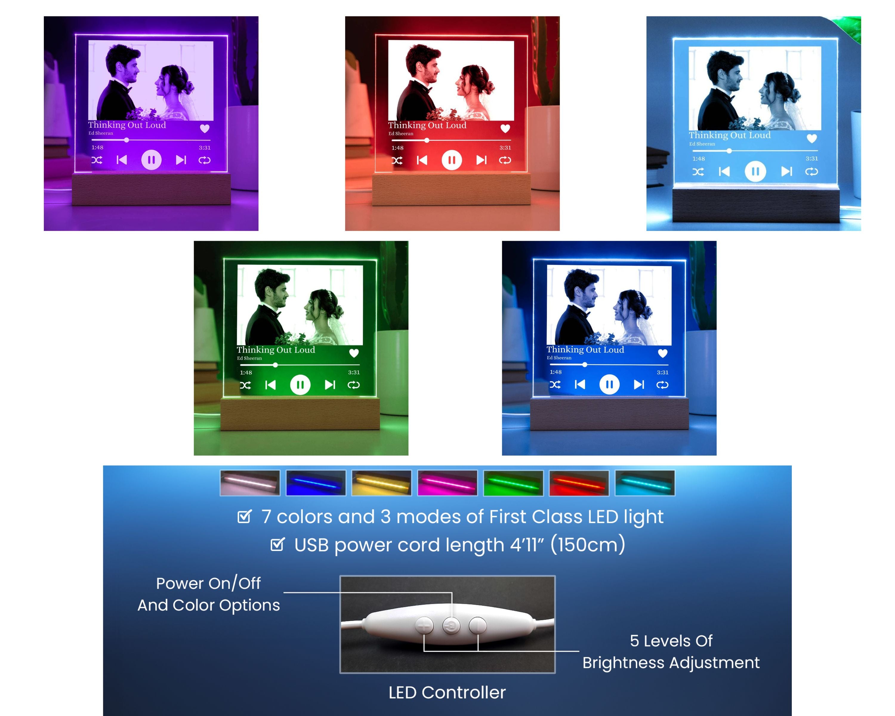 Create a memorable presentation when you upgrade to the LED wooden base with 7 colors,3 modes, and a USB plug-in!