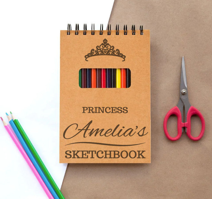 Custom Drawing Sketchbook for Creative Kids and Adults - 12 Coloring Pencils - Personalized Sketch Pad Gift for Young Artist
