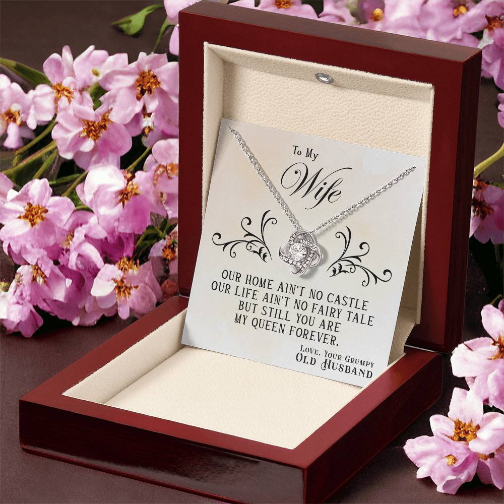 Imagine your wife's reaction to receiving this beautiful Eternal Love Knot Necklace with your loving, funny and heartfelt message.