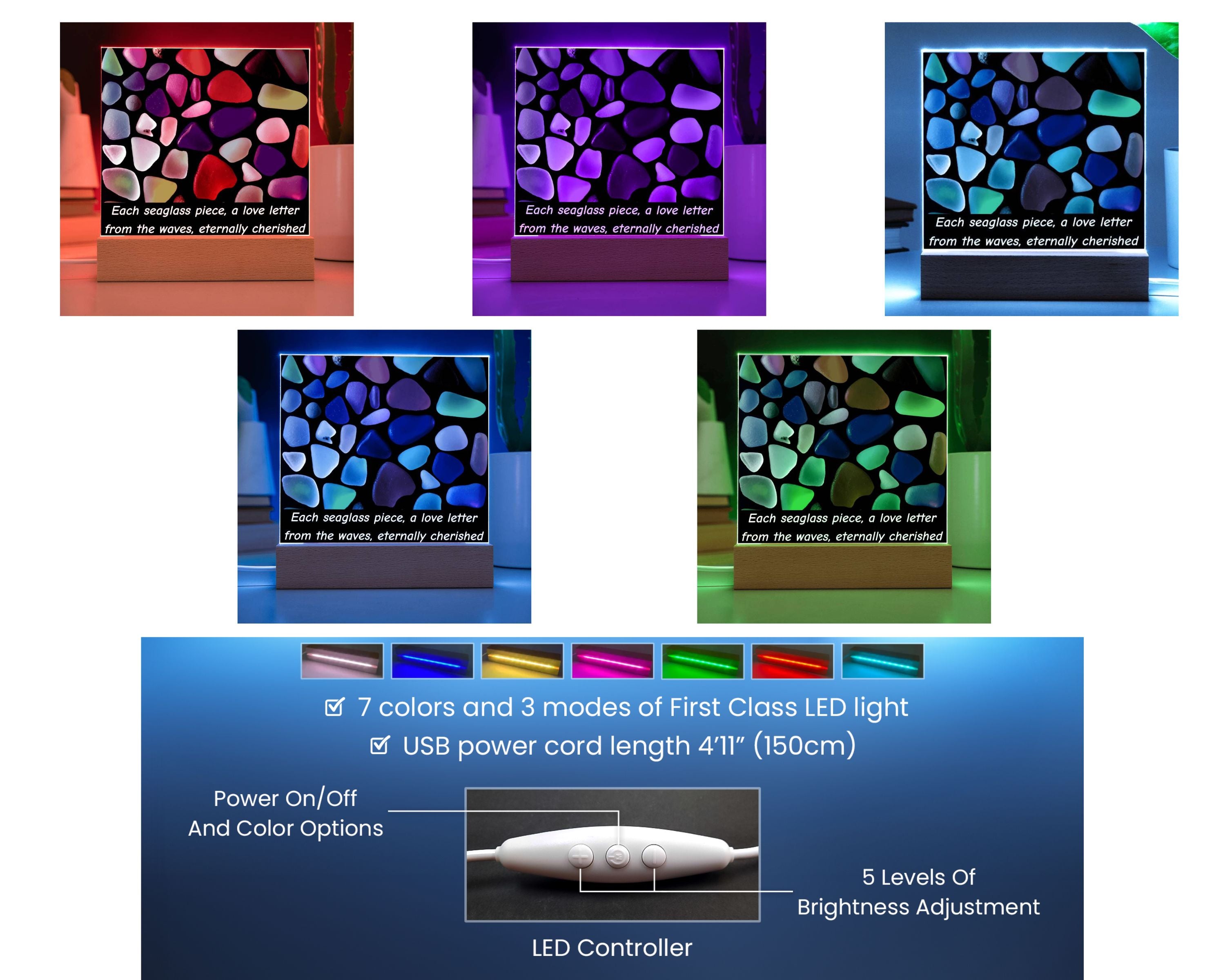Create a memorable presentation when you upgrade to the LED wooden base with 7 colors,3 modes, and a USB plug-in!