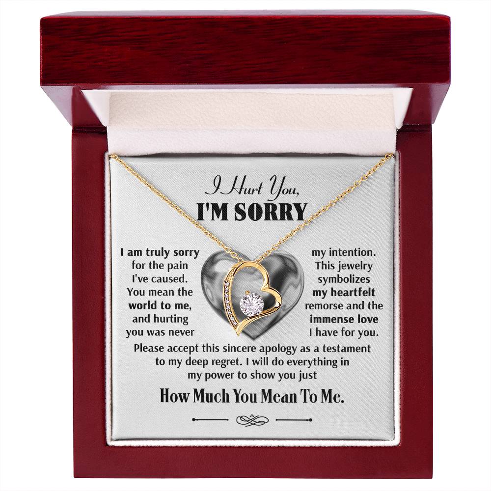 Imagine her reaction to receiving this beautiful Eternal Love Heart Necklace with your loving and heartfelt apologetic message.