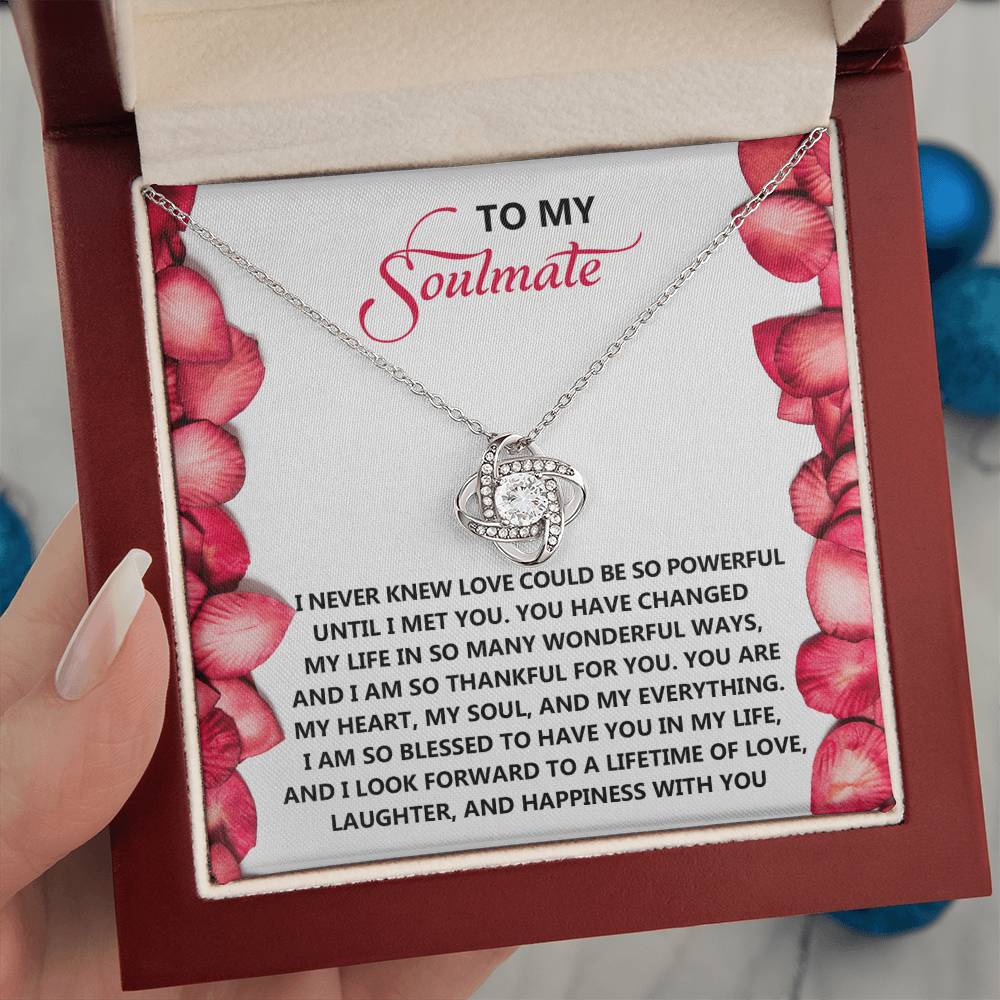 To My Soulmate Jewelry Gift - Love Knot Forever Necklace with Heartfelt Message Card From You - Until I