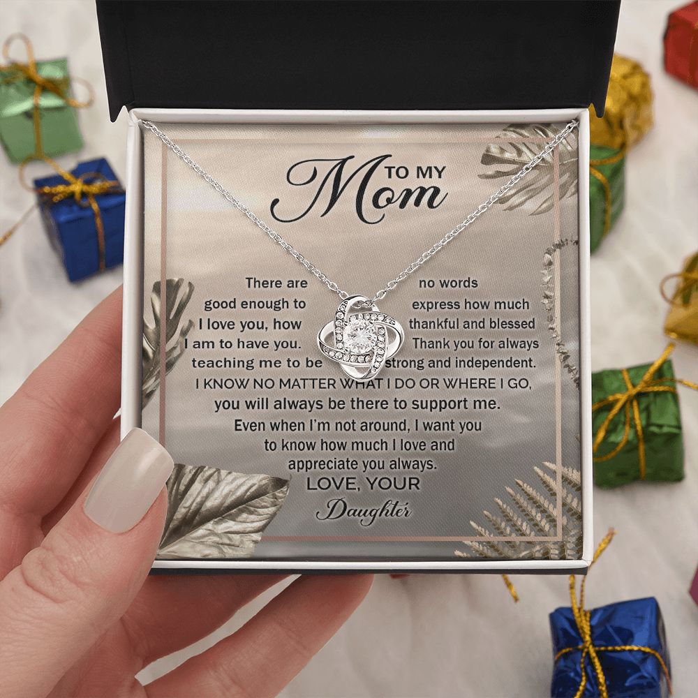 Surprise your mom on Mother's Day, her birthday, at Christmas or any time of the year just to let her know how much you love her, with this dazzling Love Knot Necklace that is sure to make her heart melt! Your enclosed message card says it all!
