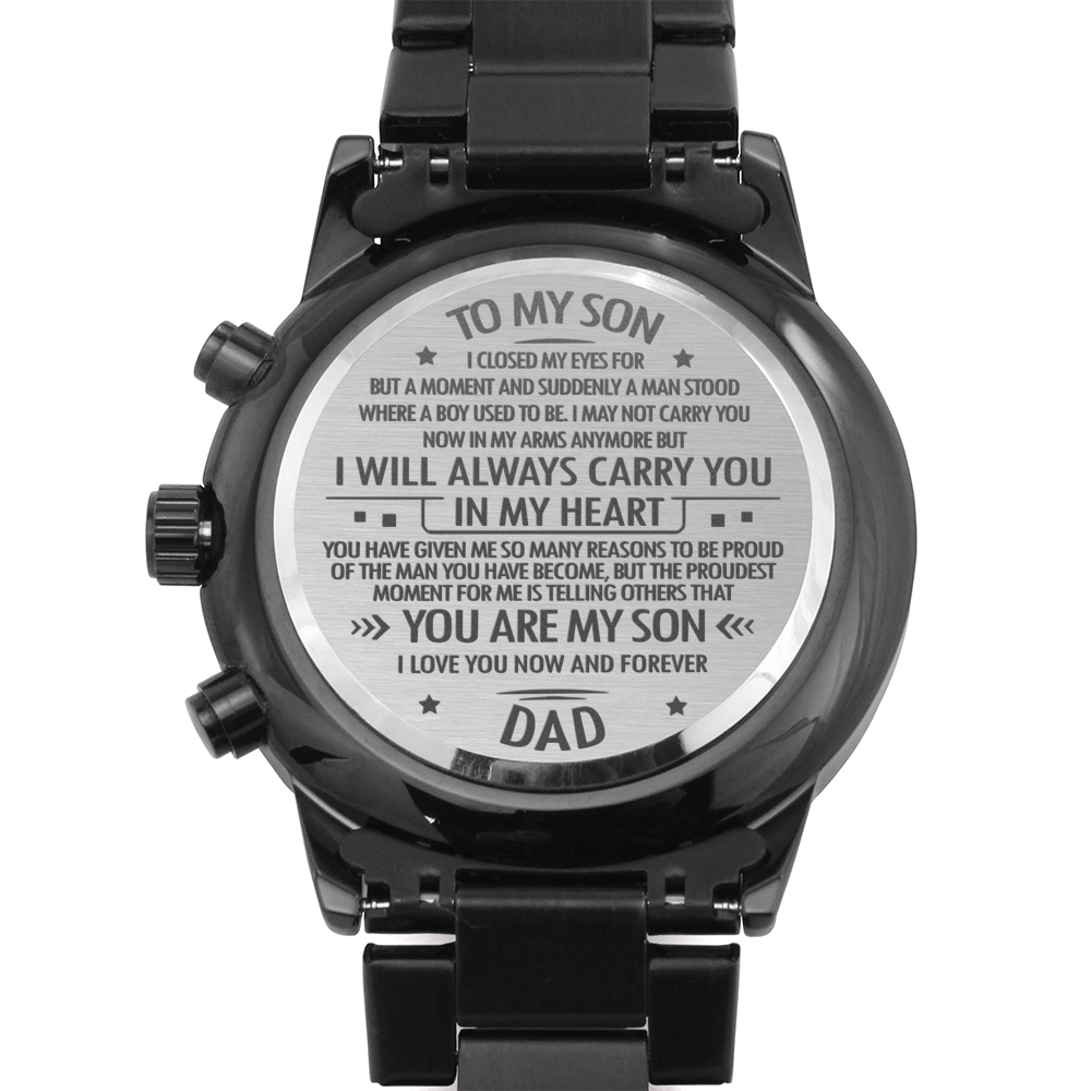 Son Gift From Dad - I Will Always Carry You In My Heart - Engraved Chronograph Watch- Shipping Included