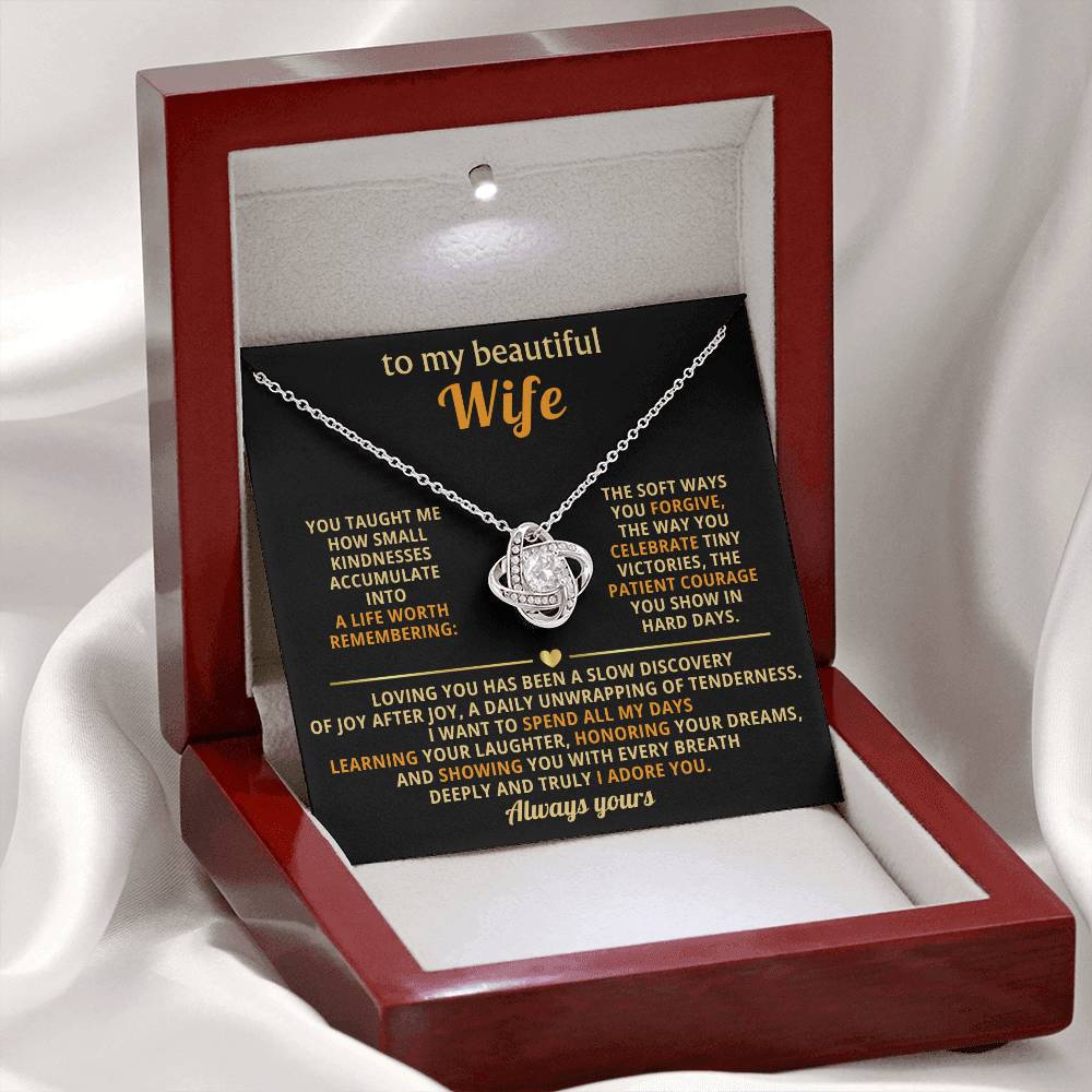 To My Beautiful Wife - A Life Worth Remembering - Eternal Love Knot Necklace in a Luxury Gift Box - Price Includes Free Shipping