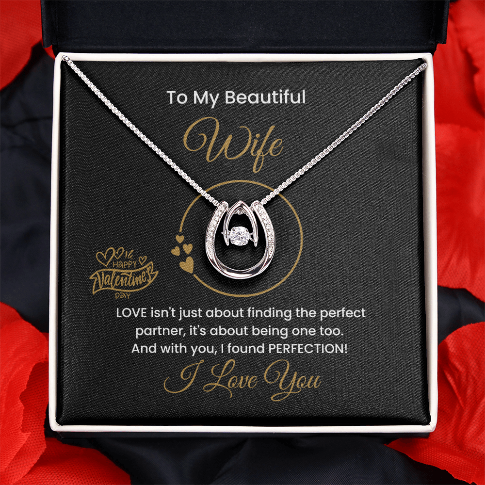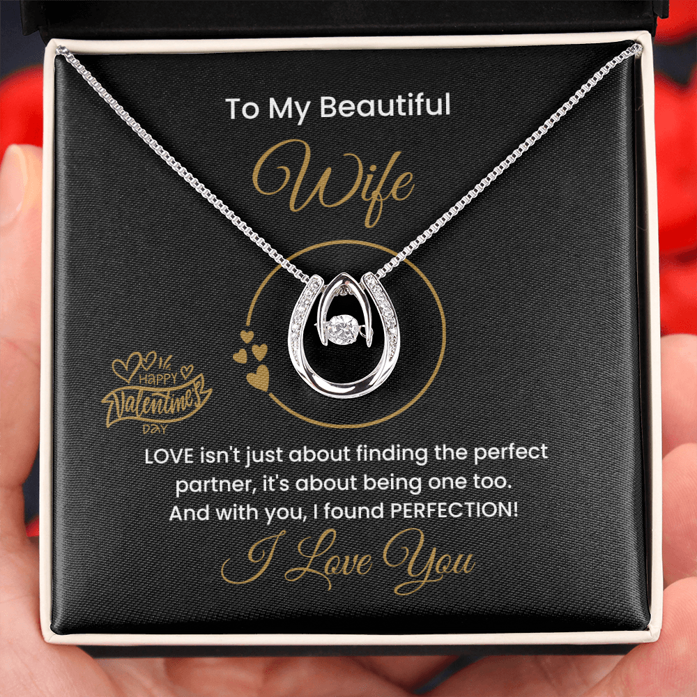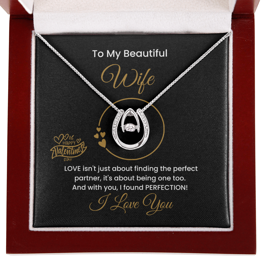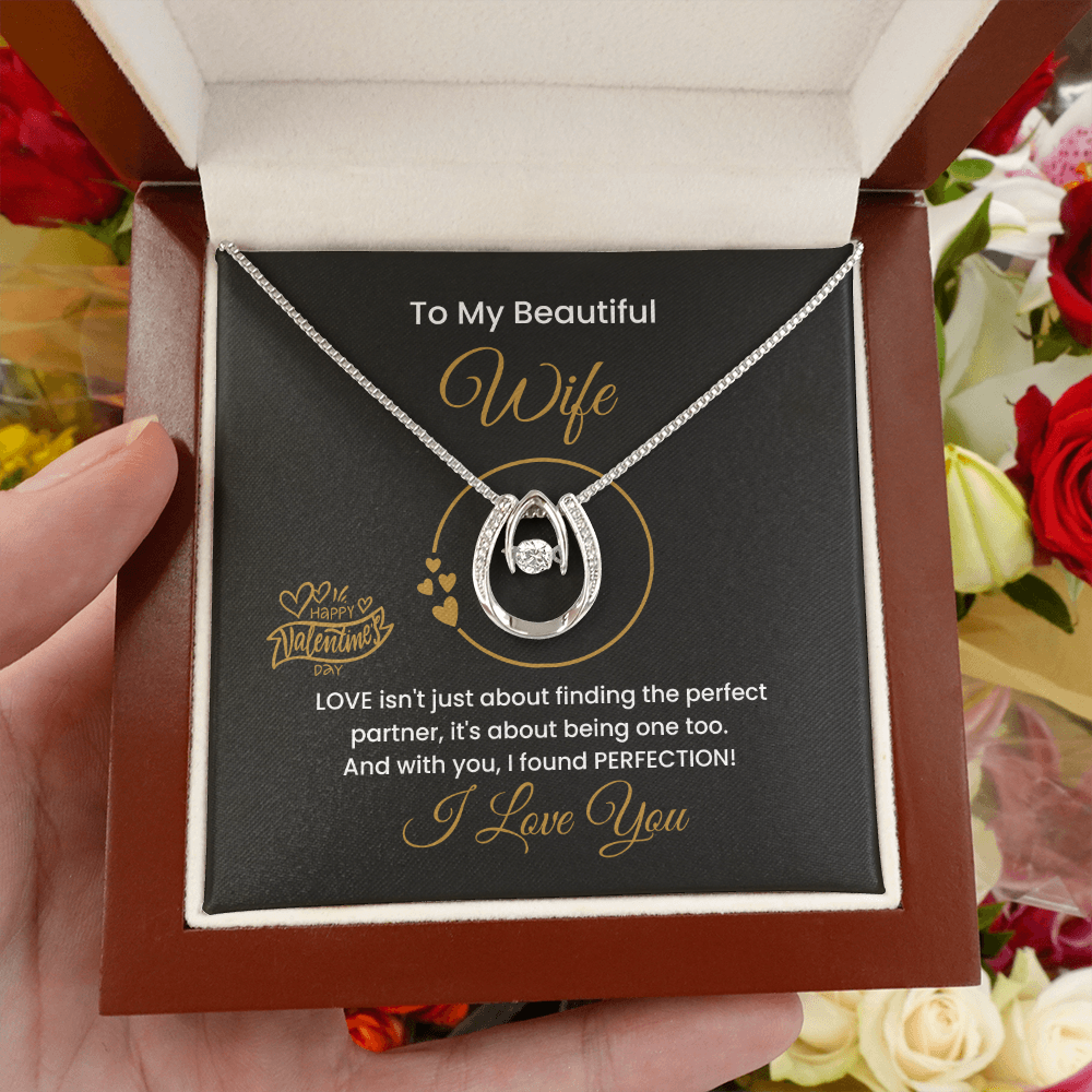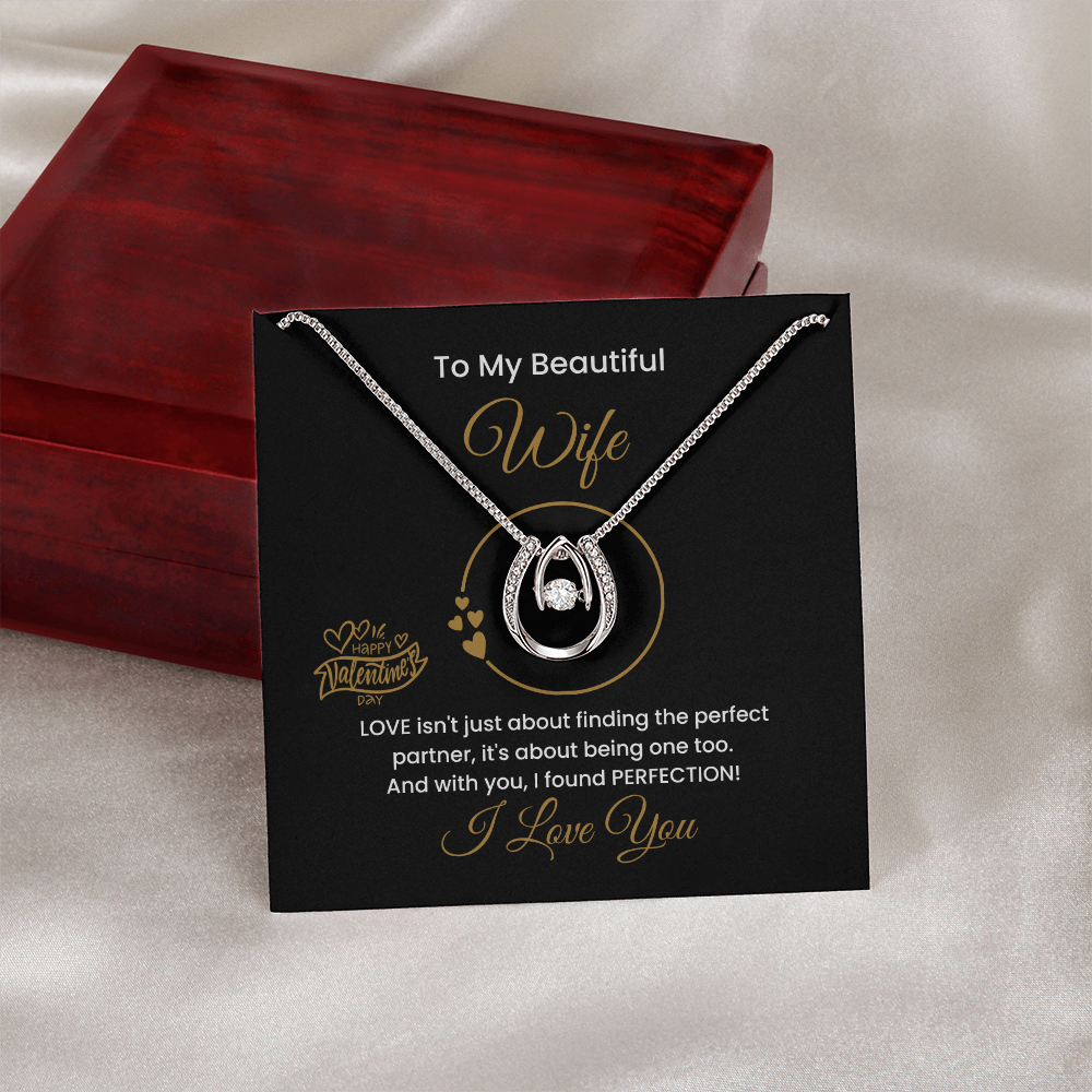 14K Gold Lucky To Be In Love Necklace, Personalized Message Card, To My Beautiful Wife