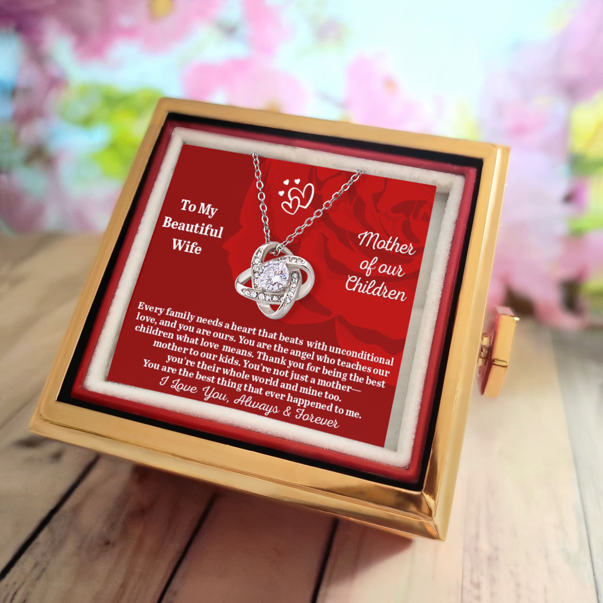 To My Beautiful Wife, Mother of Our Children – Love Knot Necklace Gift Set