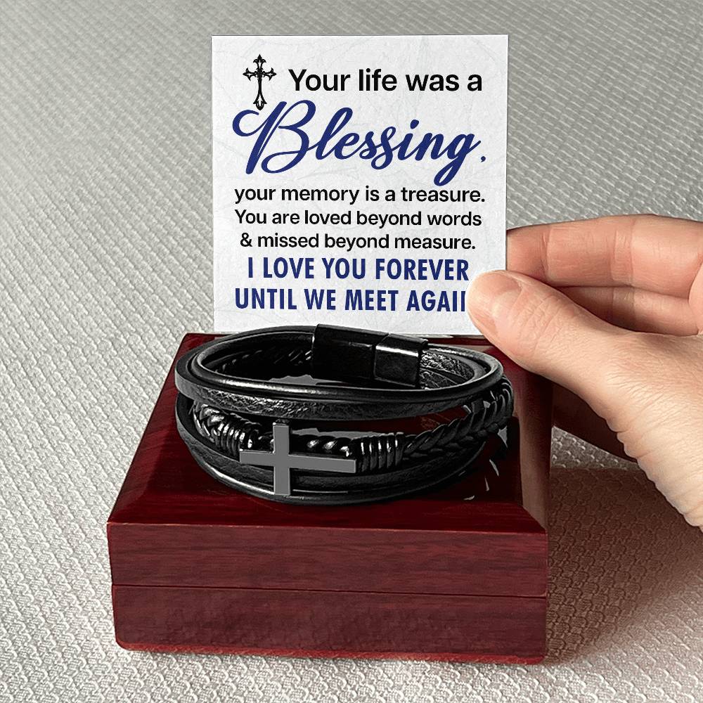 Your Life Was A Blessing - Memorial- In Remembrance - Cross Leather Bracelet